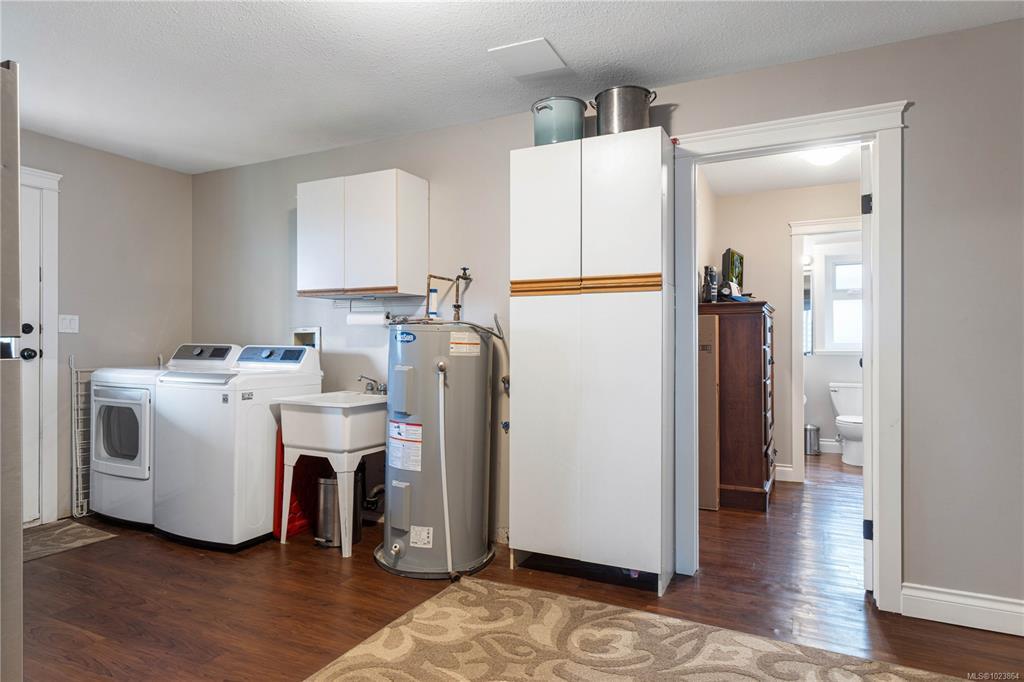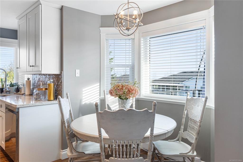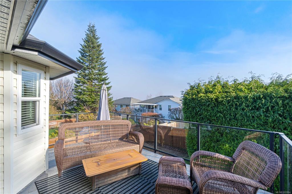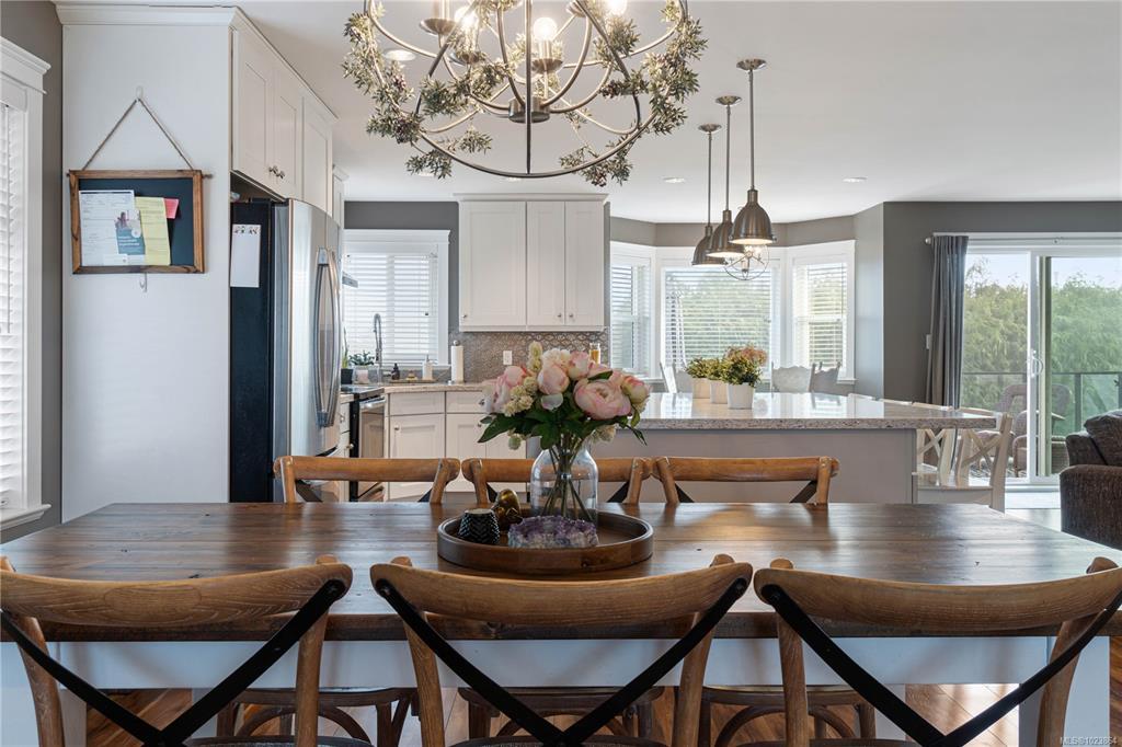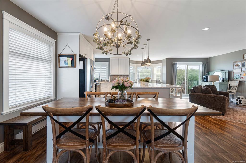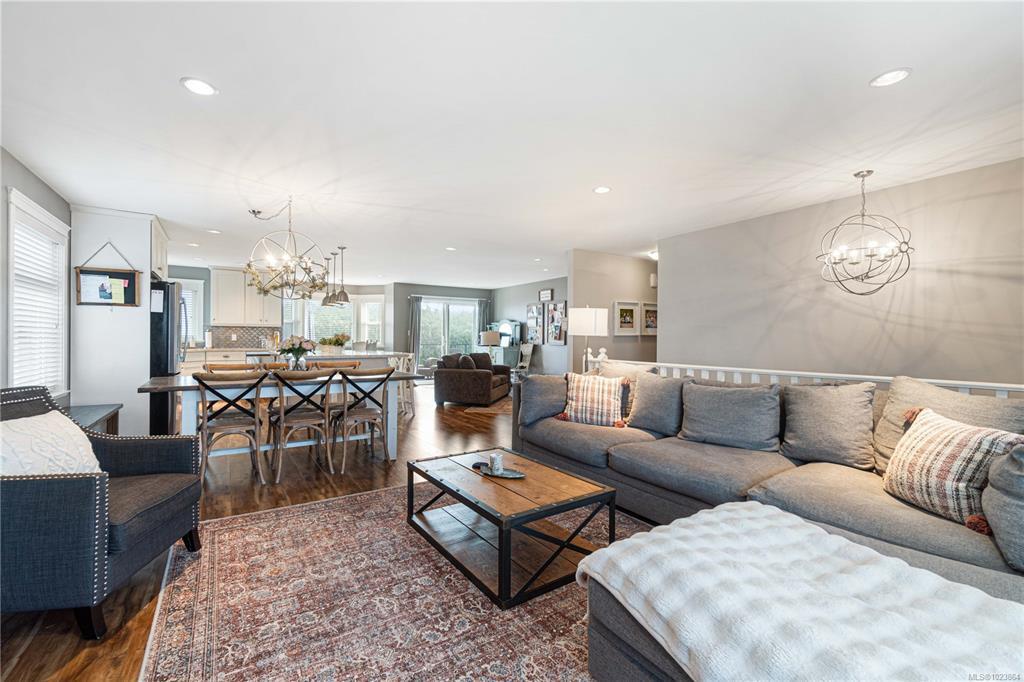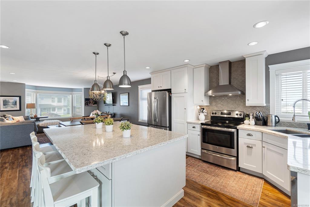 Bright and well-maintained 5-bedroom, 3-bathroom home offering 2,566 sq ft of functional living space on a 7,030 sq ft lot in a desirable North Nanaimo neighbourhood. Ground-level entry with main living up provides an excellent family-friendly layout and strong natural light throughout. The kitchen is well designed for everyday use and hosting, featuring an extra-large island, bar seating and an eating nook flooded with natural light. Two gas fireplaces deliver efficient heating and added comfort on both levels. Updates have been completed throughout the home, enhancing everyday livability. A sun-filled deck extends the main living area and offers ideal outdoor space for daily use and entertaining. Exceptional parking options include a double garage, large driveway, street parking, and dedicated RV parking. Located on a quiet residential street close to schools, shopping, parks, and all North Nanaimo amenities. All measurements are approx and must be verified if important.
