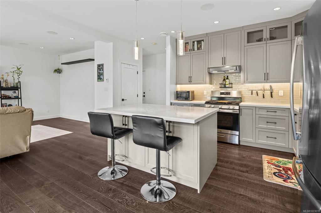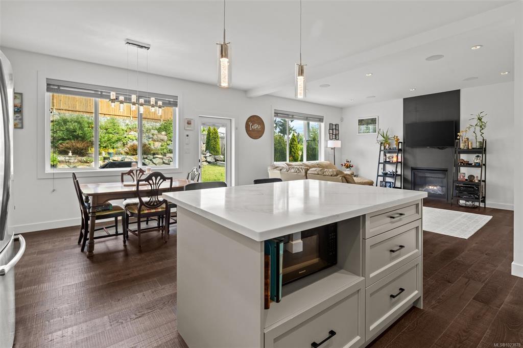 Modern Classic! Move right into this picture-perfect 2020-built 4BD/3BA executive-style home w/over 1,900 sq.ft. of elegant living space. Features include overhieght 9-ft ceilings up & down, droolworthy engineered hardwood floors on the main level, & a stunning chef’s kitchen w/custom cabinets, quartz counters, island storage & SS appliances. The open-concept main layout flows out to a private patio & sizable yardspace. Cozy living room w/nat.gas fireplace & formal dining area perfect for entertaining. Upgrades include HW-on-demand, wired speaker system, & heatpump w/A/C. Upstairs boasts a luxurious primary suite w/ceiling detail, WIC & spa-like ensuite w/heated floors. 3 addtl. spacious BR, 4-pce main bath & laundry room complete the level. Ample storage w/dbl garage & 5-ft crawl w/easy access. Fenced & landscaped yard w/33-ft patio & gas BBQ hookup. Fabulous location close to parks, hiking, schools, bus route, & all amenities the Sooke core has to offer! Your forever home awaits!