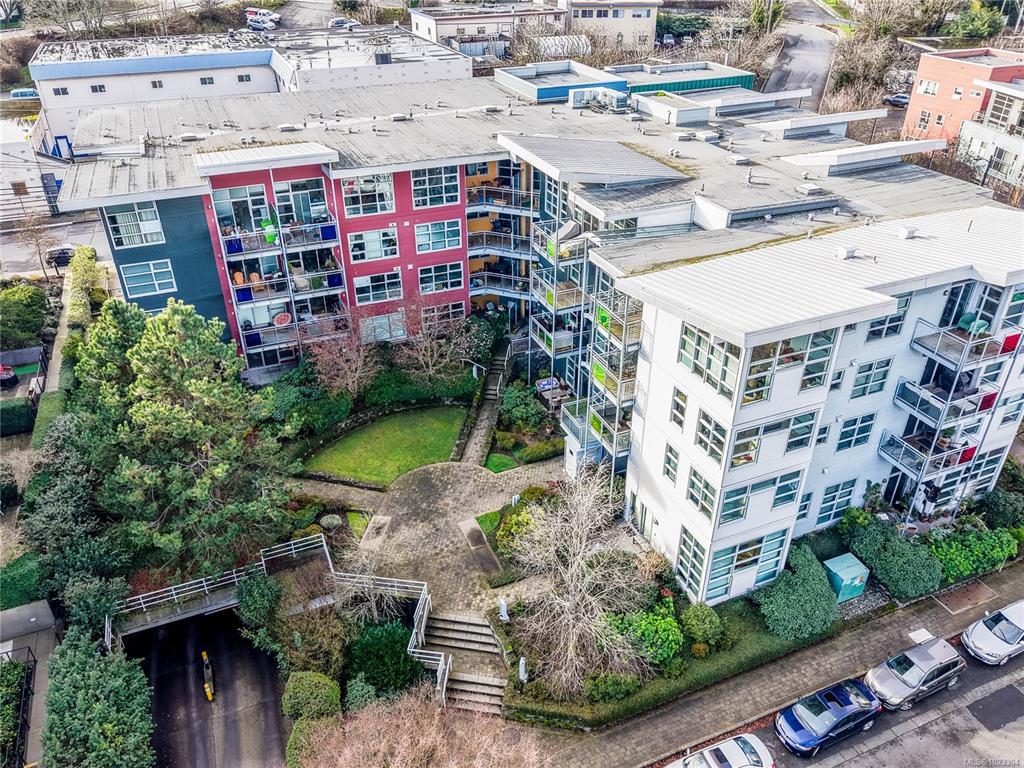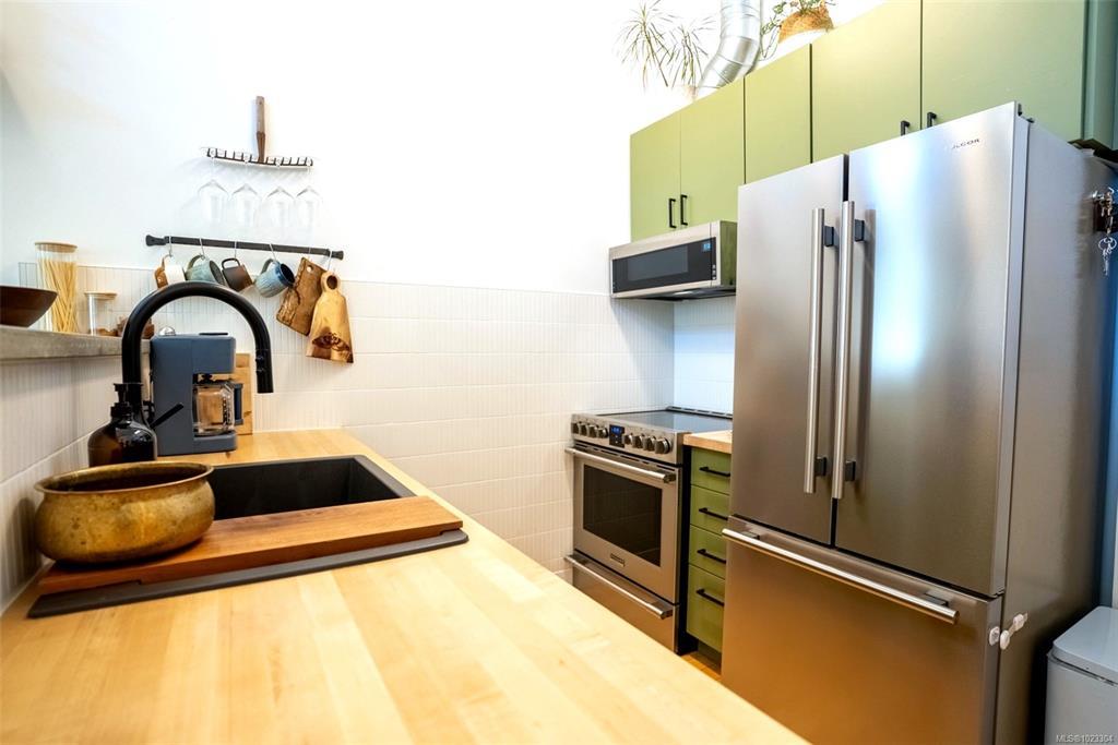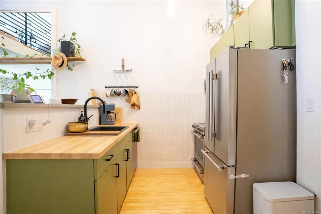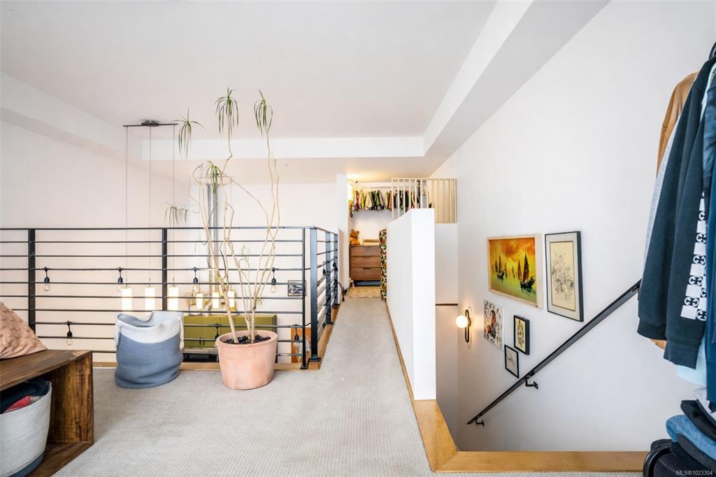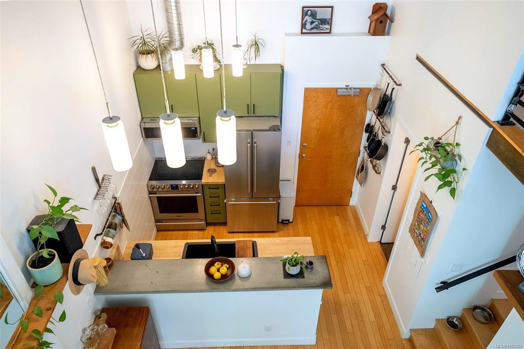 Welcome to this 2-level loft-style home at 4-797 Tyee Road, offering modern design, flexible live/work zoning, and private outdoor living in the heart of Vic West. With approximately 723 sq. ft. of interior space plus a generous patio, this home offers a unique urban lifestyle. The open-concept main level features soaring ceilings, abundant natural light, and direct patio access—perfect for entertaining or relaxing. The contemporary kitchen includes stainless steel appliances, updated counters, tile backsplash, ample cabinetry, and peninsula seating. A 4-piece bathroom, in-suite laundry, and efficient storage complete the main floor. Upstairs, the loft-style bedroom overlooks the living area and features excellent ceiling height and a dedicated closet. Live/work zoning supports office or studio use. Additional highlights include a private entrance, parking stall, storage with kayak and bike racks. Steps to trails, shops, cafés, parks, the waterfront, and minutes to downtown Victoria.