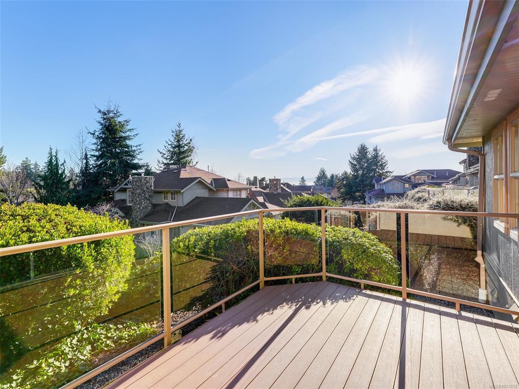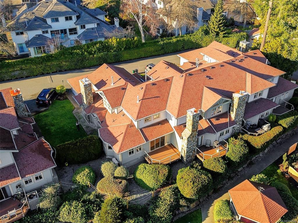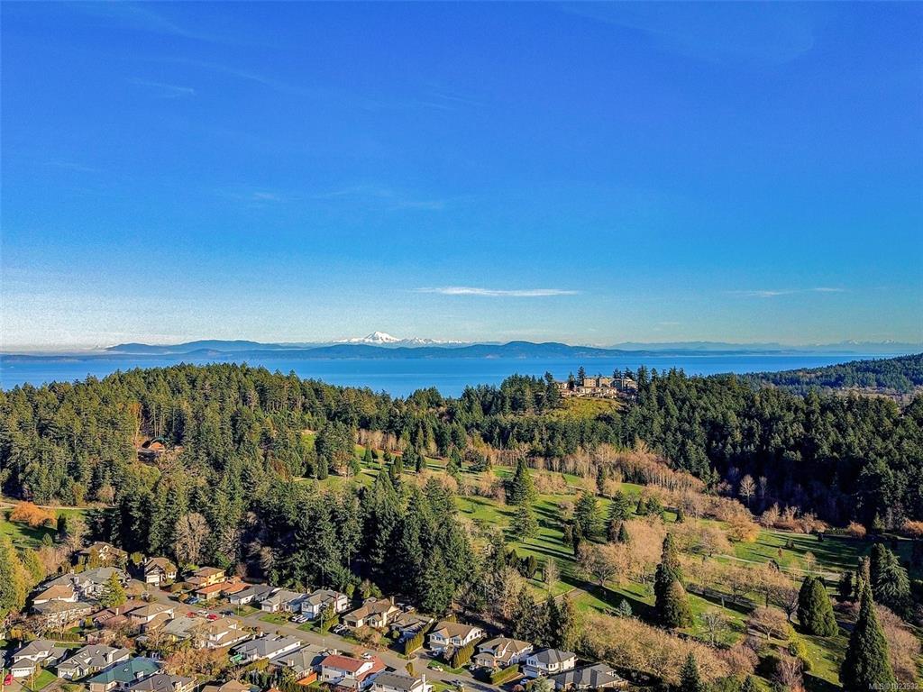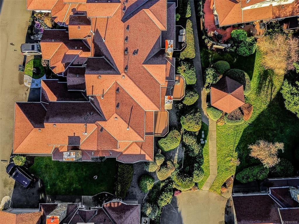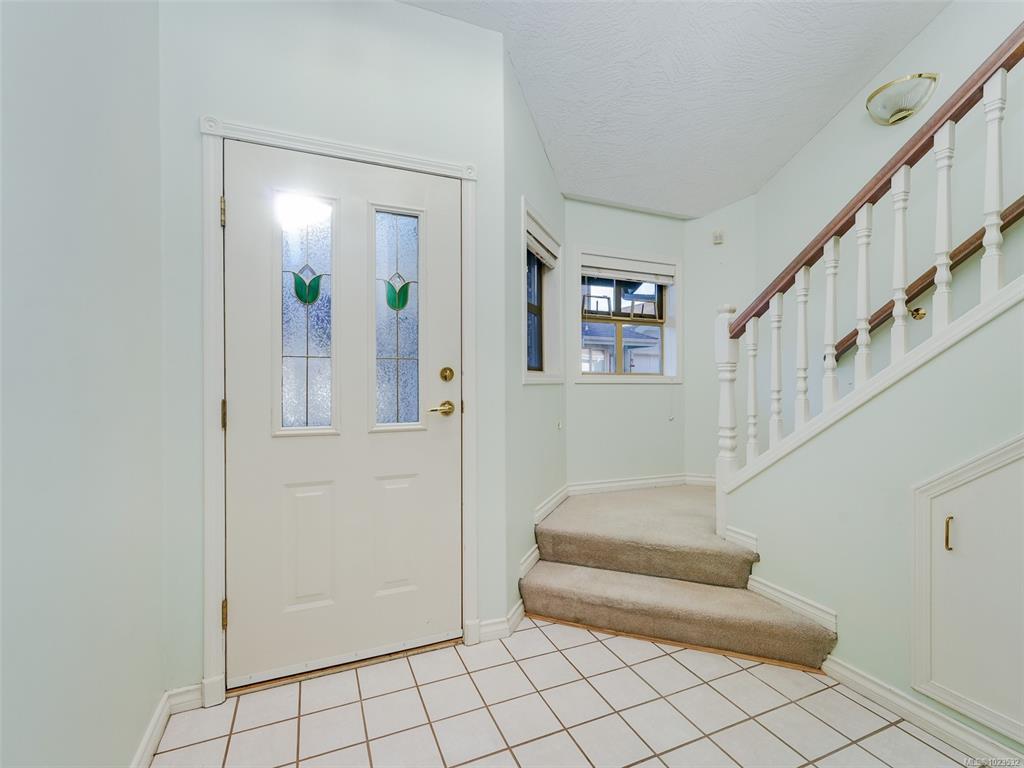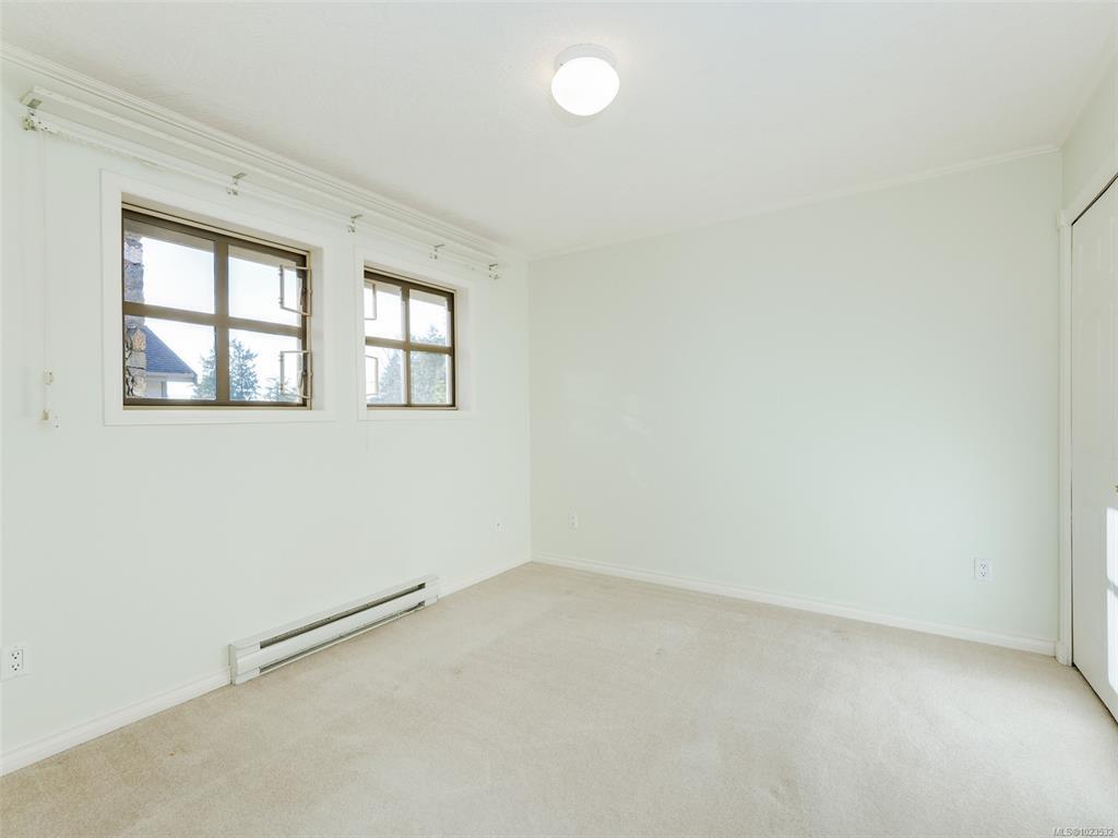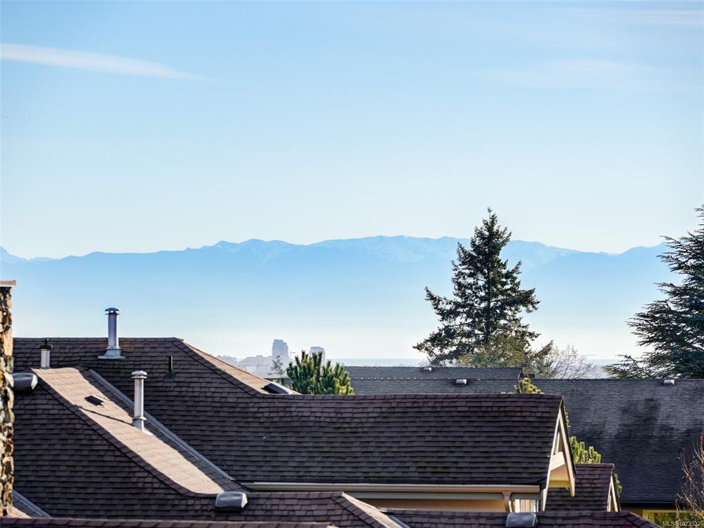 Once upon a time, this unit was the show suite - not surprising as it arguably has the best location in the complex with a view of the Cascade mountains and the twinkling lights of the city. The cathedral ceiling offers a majestic entrance lending to the spacious feel of the unit. Light pours in from all but one side & stays there throughout the day. On the main floor a generously sized master bedroom w/a large ensuite, soaker tub & separate shower offers the option of main floor living. Upstairs are 2 large bedrooms, a 5/p bathroom and a large storage space. Easy access to an extensive trail system at nearby Elk Lake & located close to Commonwealth Rec Centre. Downtown Victoria a mere 15 minutes away, but everything you need is just minutes away: Broadmead & Royal Oak Shopping Centres. While updates might be desired, the main ticket items: new hot water tank & heat pump were installed in 2025. This is fantastic opportunity you will not want to miss! Immediate possession!