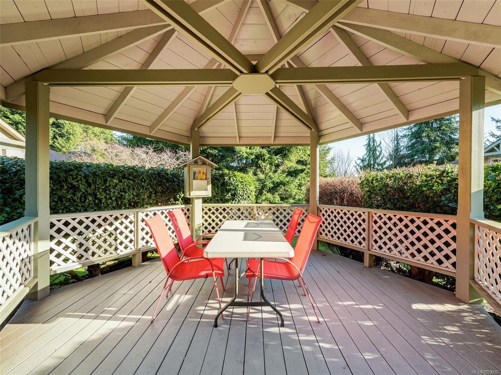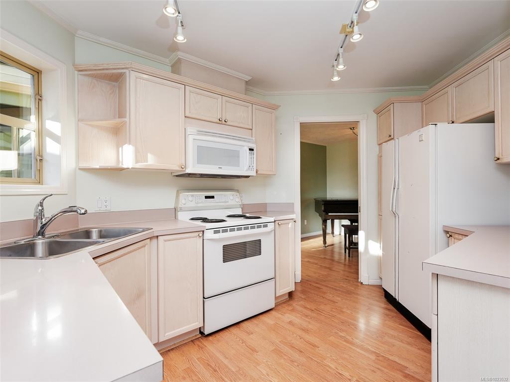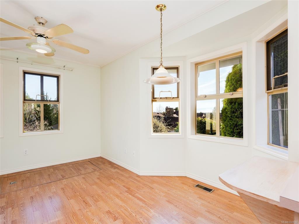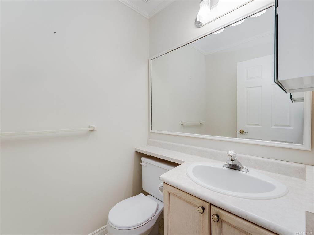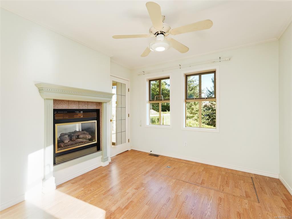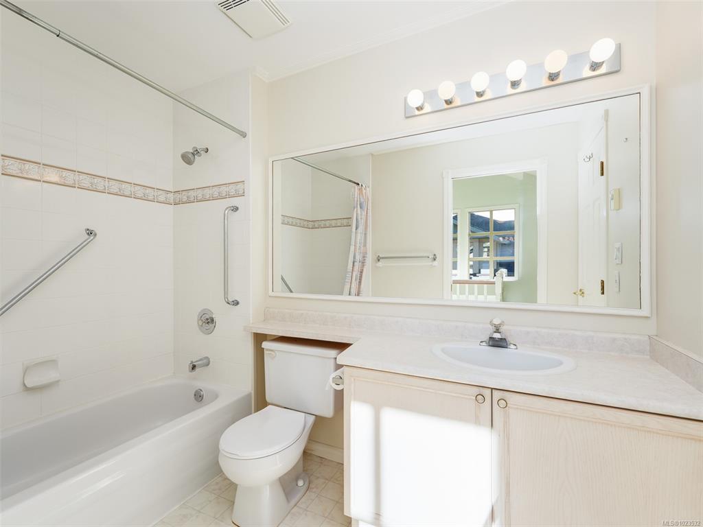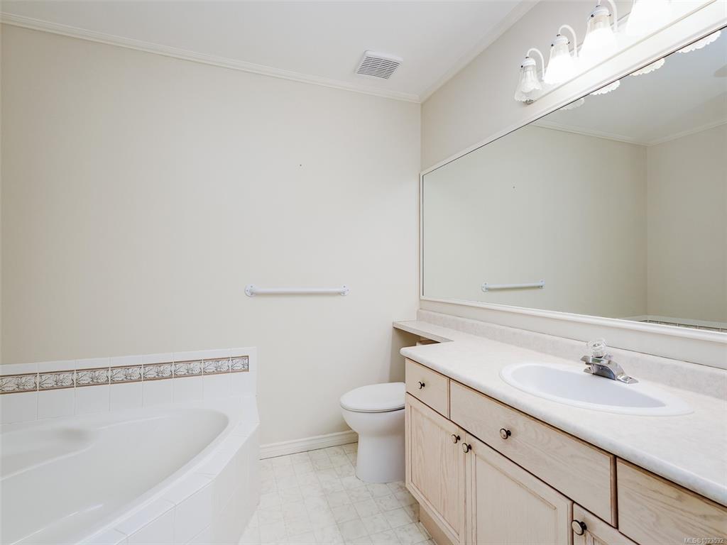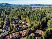 Once upon a time, this unit was the show suite - not surprising as it arguably has the best location in the complex with a view of the Cascade mountains and the twinkling lights of the city. The cathedral ceiling offers a majestic entrance lending to the spacious feel of the unit. Light pours in from all but one side & stays there throughout the day. On the main floor a generously sized master bedroom w/a large ensuite, soaker tub & separate shower offers the option of main floor living. Upstairs are 2 large bedrooms, a 5/p bathroom and a large storage space. Easy access to an extensive trail system at nearby Elk Lake & located close to Commonwealth Rec Centre. Downtown Victoria a mere 15 minutes away, but everything you need is just minutes away: Broadmead & Royal Oak Shopping Centres. While updates might be desired, the main ticket items: new hot water tank & heat pump were installed in 2025. This is fantastic opportunity you will not want to miss! Immediate possession!