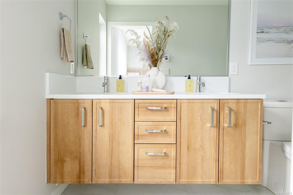 Make this final corner home in Phase 1 at Willow + Glen yours! This 4 Bed, 3.5 Bath home by Abstract Developments offers additional windows, 9’ ceilings and widened dining area that allows light to shine throughout 1,426 sq ft of serene living space. The spacious gourmet kitchen features sage lacquered cabinetry with gloss quartz countertops, built-in storage solutions, Smart Samsung stainless-steel appliance package & bonus 4-seat island. Designed with a built-in desk, full height pantry & a south facing balcony. Primary includes walk-through closet & ensuite featuring double sinks. Each home is uniquely yours & showcases a private front patio with low maintenance landscaping. Socialize with neighbours, play with your kids or take your dog out at Willow + Glen’s private community greenspace Bodman Park. Other conveniences include side-by-side car garage & in home cooling. Located in the heart of Langford and across from Glen Lake, the Galloping Goose & shopping amenities. Price + GST.