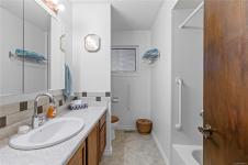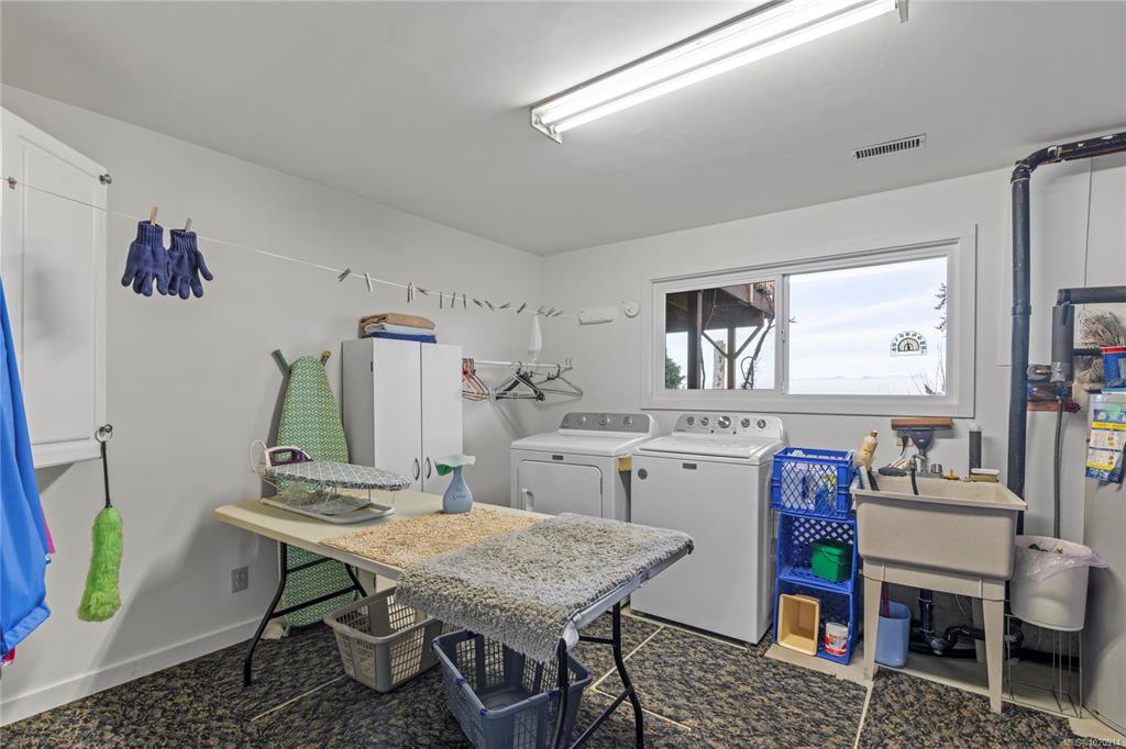 SPACIOUS OCEAN VIEW HOME IN IDEAL NANAIMO LOCATION. With nearly 2,300 square feet of living space, this 3 bedroom, 3 bathroom home offers room to spread out and enjoy the beautiful ocean views. The main floor makes the most of the view, with a spacious living room and dining room that give access to the back deck which runs the length of the house, perfect for relaxing or entertaining. The primary suite has an updated 2 piece ensuite, while two additional bedrooms on this level share a full bath. Downstairs, you will find a rec room with a cozy wood stove, three-piece bathroom, and a huge laundry area with outdoor access. There's also a partially finished space which hosts a workshop and loads of storage, giving the home plenty of potential to grow with your needs. Nestled in a quiet neighbourhood close to Pipers Lagoon, trails, and parks, this home combines space, practicality, and opportunity in a serene setting.