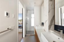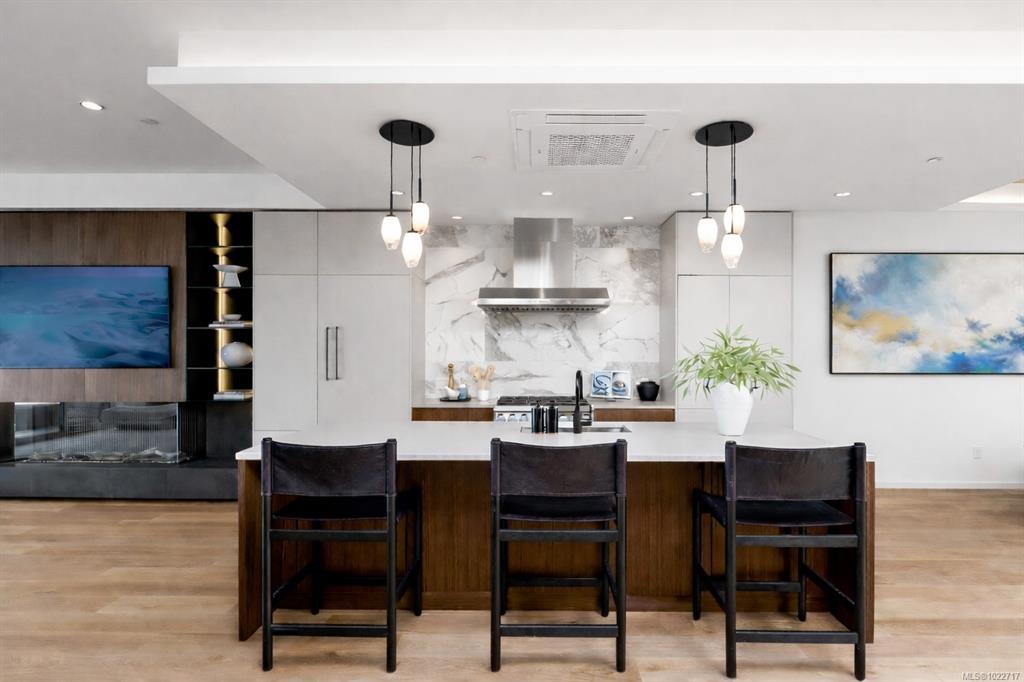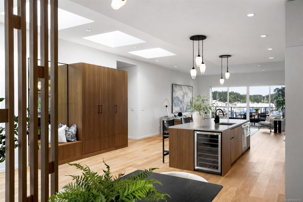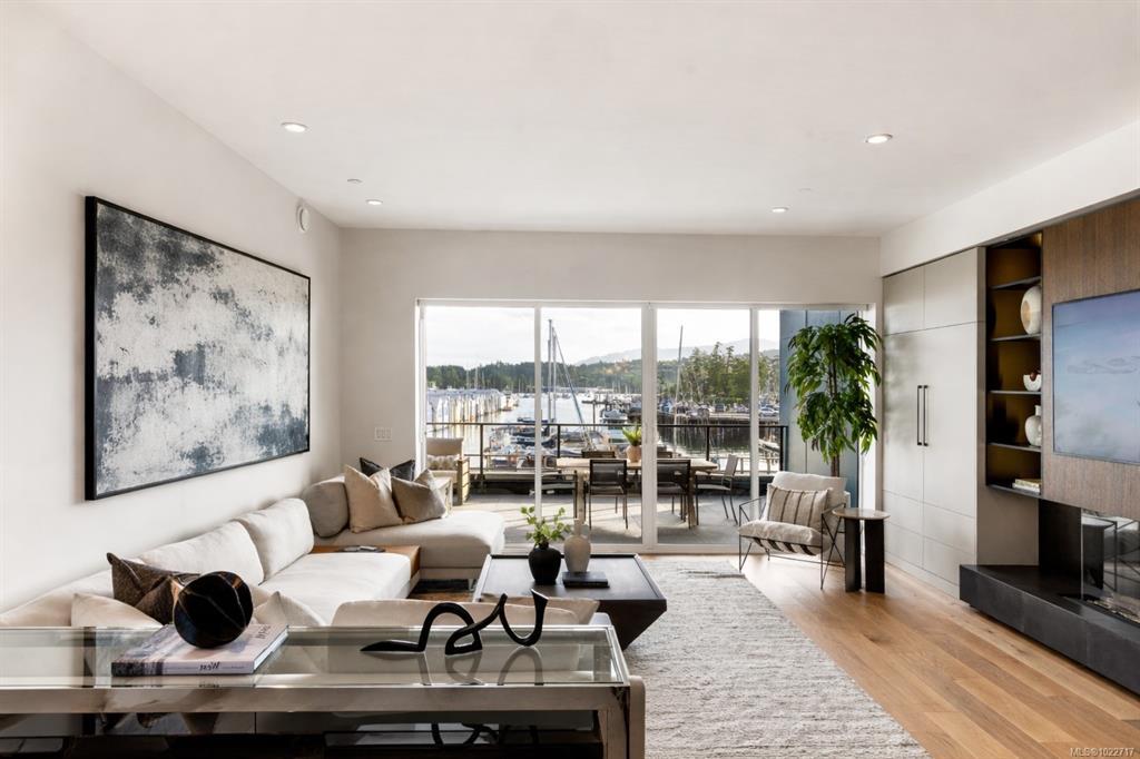 Brand-new luxury waterfront townhome in Sidney, BC, just steps from a top-tier marina, dining, and shops. Offering over 3,200 sq ft of curated living space, this home lives like a detached residence, ideal for downsizing without compromise. The main level features a full-size chef’s kitchen, dining area, gas fireplace, spacious patio, and a primary bedroom with spa-inspired ensuite. Upstairs offers a second primary suite plus two outdoor living areas, including west-facing ocean and marina views for sunset enjoyment and a southwest patio perfect for gardening. Additional highlights include a private elevator, over-height double garage with storage, and a self-contained suite ideal for guests or a professional practice. Walk to beaches, Roberts Bay and enjoy kayaking and paddleboarding from your doorstep. A rare opportunity for low-maintenance waterfront living.