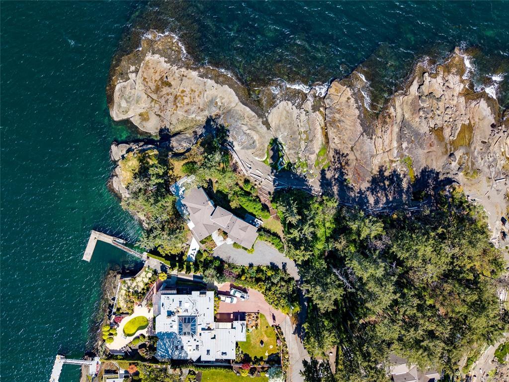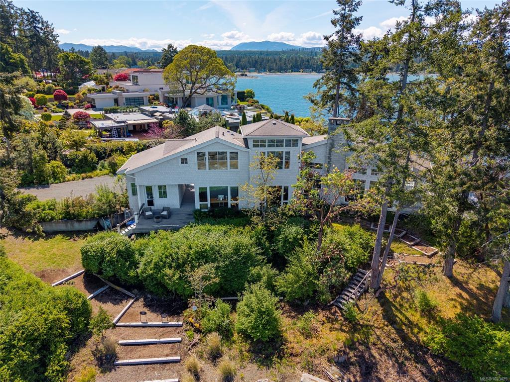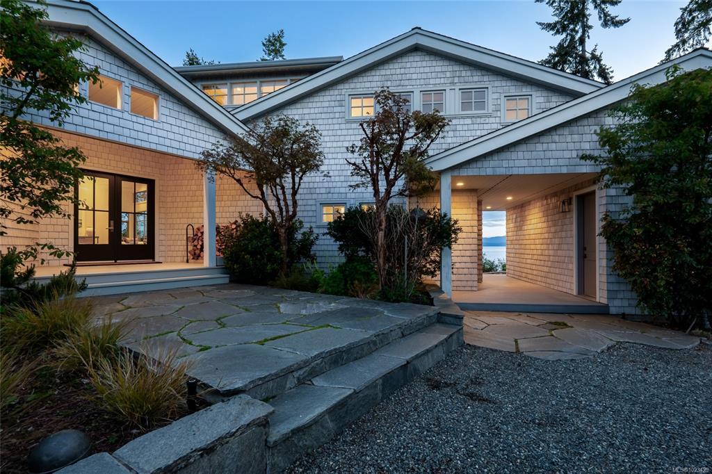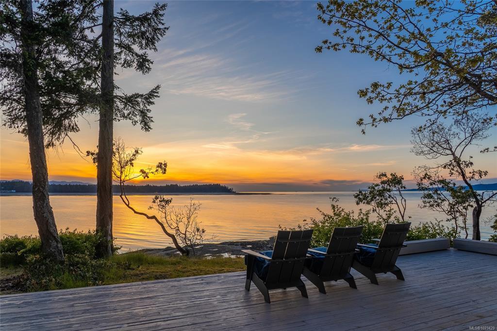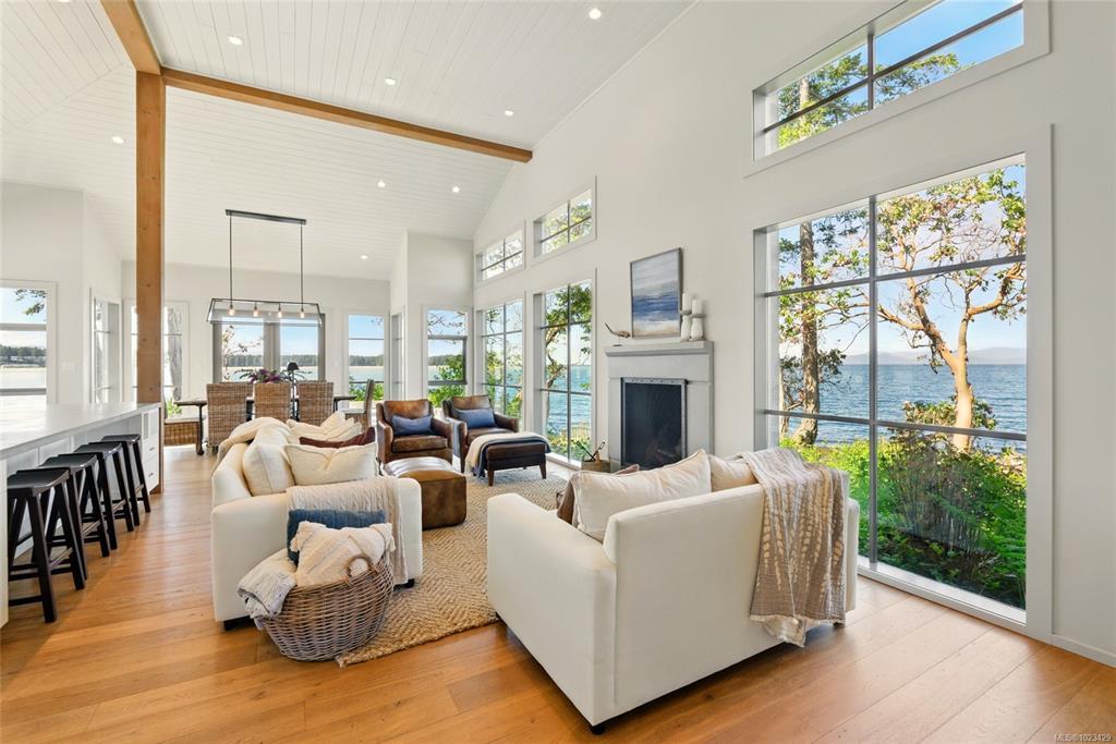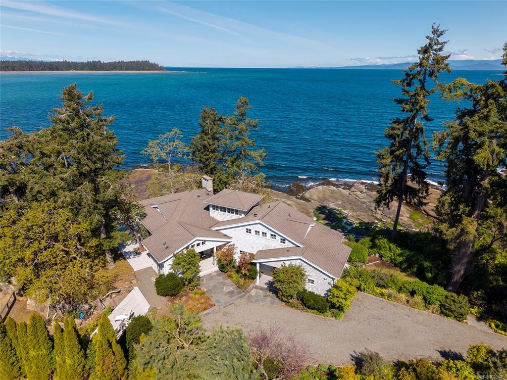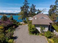 Located at the private tip of Madrona Point, this exceptional Nanoose Bay waterfront residence sits where parkland & the Pacific converge. Set on a tranquil 1/2 acre lot, the home blends classic Cape Cod influence with a refined coastal aesthetic, featuring soaring 14-foot pine ceilings, fir posts, beams & radiant in-floor heating. The open-concept main level is anchored by a striking 12-foot custom concrete island & floor-to-ceiling windows that frame uninterrupted ocean views. A wood-burning fireplace adds warmth to the expansive living area, while 2 generous primary bedrooms offer spa-inspired ensuites & flexible use of space. Outdoor living is defined by 270-degree vistas & terraced irrigated gardens leading to the shoreline, complete with a boat lift for up to a 20-foot vessel. A covered breezeway connects to a charming guest suite with loft accommodations. Just minutes from Qualicum Beach Airport with easy access to Helijet & BC ferries, this is the pinnacle of West Coast luxury.