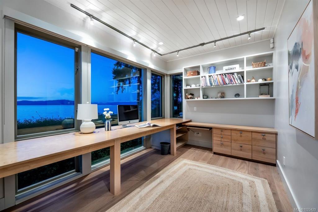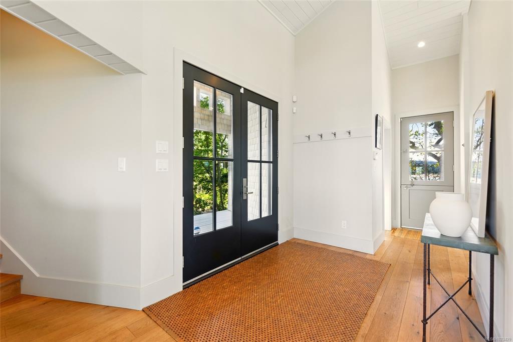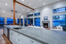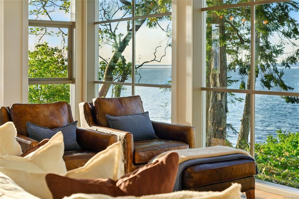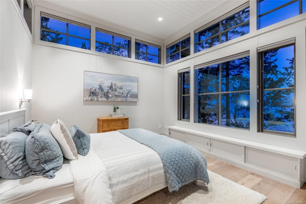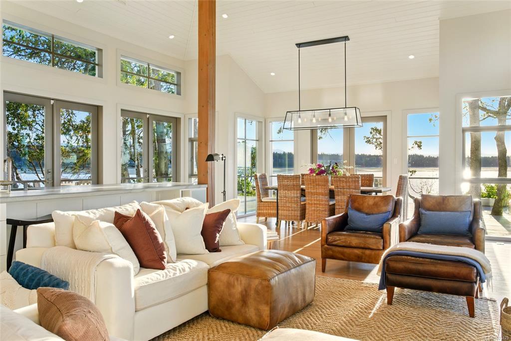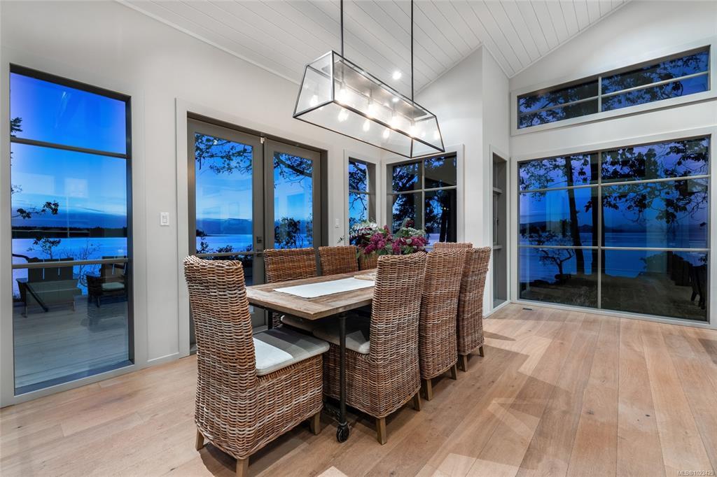 Located at the private tip of Madrona Point, this exceptional Nanoose Bay waterfront residence sits where parkland & the Pacific converge. Set on a tranquil 1/2 acre lot, the home blends classic Cape Cod influence with a refined coastal aesthetic, featuring soaring 14-foot pine ceilings, fir posts, beams & radiant in-floor heating. The open-concept main level is anchored by a striking 12-foot custom concrete island & floor-to-ceiling windows that frame uninterrupted ocean views. A wood-burning fireplace adds warmth to the expansive living area, while 2 generous primary bedrooms offer spa-inspired ensuites & flexible use of space. Outdoor living is defined by 270-degree vistas & terraced irrigated gardens leading to the shoreline, complete with a boat lift for up to a 20-foot vessel. A covered breezeway connects to a charming guest suite with loft accommodations. Just minutes from Qualicum Beach Airport with easy access to Helijet & BC ferries, this is the pinnacle of West Coast luxury.