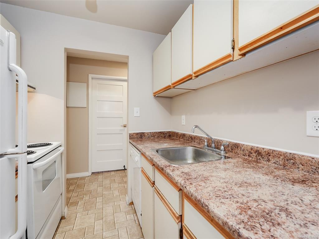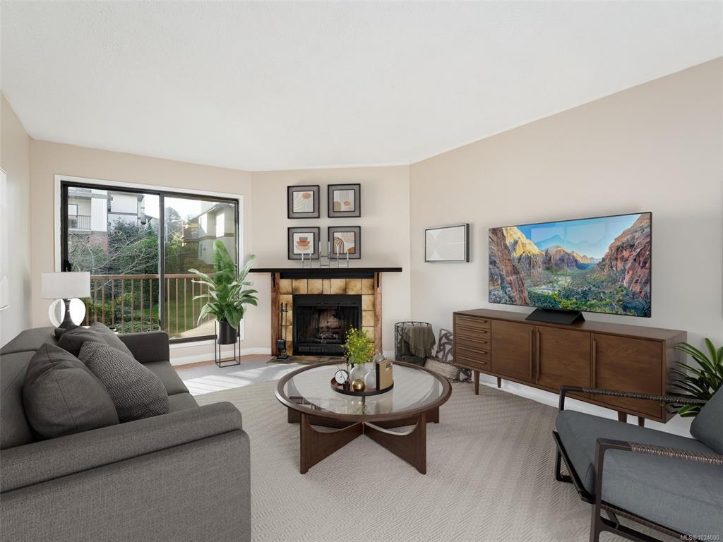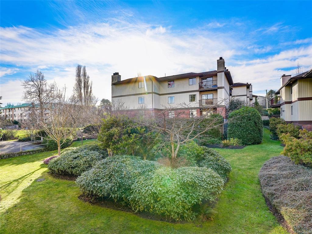 Welcome to this sweet southeast-facing one-bedroom condo overlooking the complex’s private, landscaped courtyard—peaceful, green, and no road views in sight. Freshly professionally painted, this move-in-ready home offers a spacious layout with a large living room featuring a cozy wood-burning fireplace, dedicated dining area, generous bedroom, and a 4 piece bathroom. Enjoy the serenity of garden views from your suite, plus the convenience of secure underground parking, extra storage, and an on-site exercise room. Located in the Chestnut Grove complex on a quiet, tree-lined street, this centrally located complex is close to Jubilee Hospital, UVic, Camosun, Fernwood Village, shopping, grocery stores, and major bus routes—with downtown just a short bike ride away. Rentals welcome! Move in ready! Excellent value!