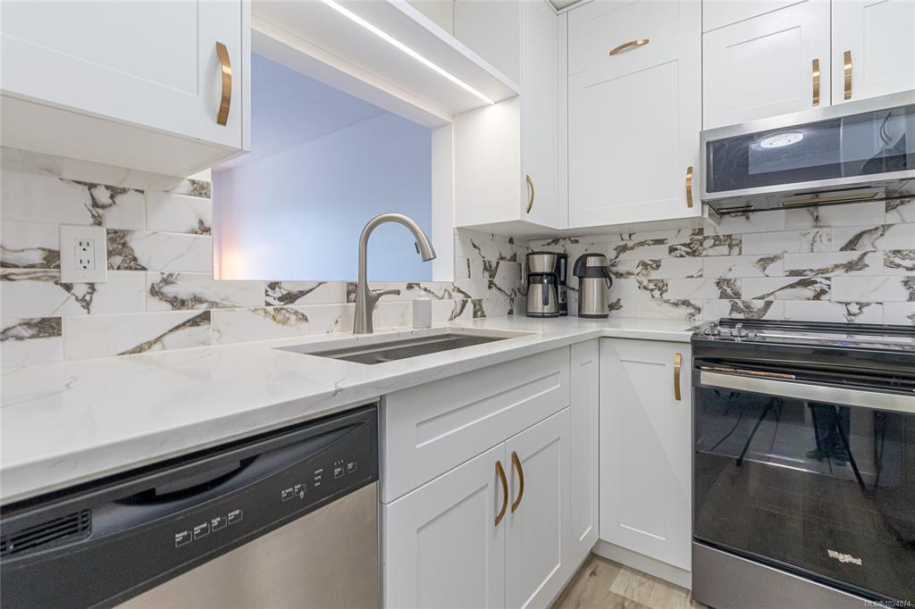 Centrally located and walkable to Country Grocer, bus routes, and restaurants, this 2 bed, 1 bath townhome offers convenience and comfort. The kitchen features stainless steel appliances, new cabinets and countertops. The open concept living and dining area is bright and spacious, perfect for relaxing or entertaining. Upstairs you'll find two bedrooms, a bathroom with a new vanity, and a laundry room for added ease. There is a garden/patio space by the front door perfect to get some sun or let the kids play. Rentals and small pets are welcome, making this home ideal for investors, first-time buyers, or those looking to downsize.