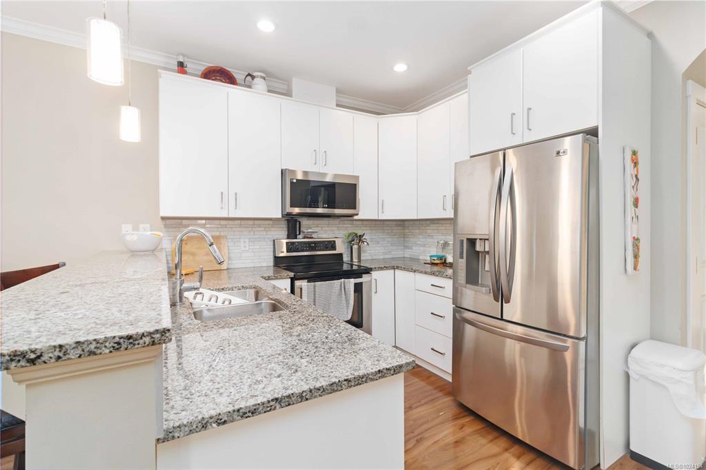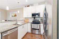 Bonuses include, electric fireplace, built in speaker system, brand new micro/oven hood fan, geothermal, dog run and shed. Enjoy outdoor living in the private and low maintenance yard—ideal for kids, pets, BBQ's and entertaining.