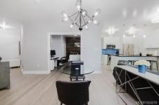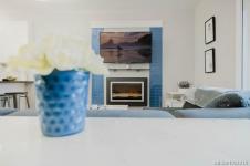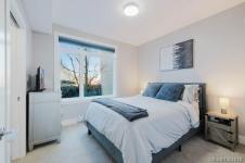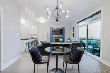 It's just perfect! A modernized corner unit set quietly within growing Mayfair neighbourhood, offering comfort and privacy. The freshly painted, open living area is warm and inviting, highlighted by updated flooring, a sleek electric fireplace and extra-wide sliding glass doors that lead to private northeast-facing balcony, filling the space with flow-through, soft morning light. A chandelier adds an elegant touch.The kitchen is well appointed w/ stainless steel appliances, double sinks w/ garburator, granite countertops, and a casual eating bar. This home offers two bathrms, incl a generous 4-pce ensuite in the primary featuring a deep soaker tub, tile flooring, under-cabinet lighting, and striking blue accent tile plus a convenient 2-pce powder room, alongside in-suite laundry w/ stacked washer & dryer. Both bedrooms are thoughtfully designed, w/ the primary bedroom offering a peaceful retreat and the second bedroom enhanced by a distinctive wood accent wall. A thoughtful touch!