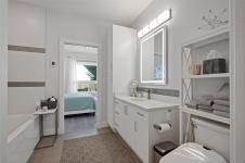 Set in Sooke’s desirable Broomhill neighbourhood, this custom-built, single-level rancher offers south-facing ocean and Olympic Mountain views with exceptional flexibility. Fully fenced and filled with natural light, the home showcases high-quality finishes throughout, including matching standards in both the main residence and the self-contained one-bedroom, two-bath living space. Both ensuite bathrooms feature heated tile floors, soaker tubs, and walk-in showers, while generous storage is found throughout the home. Each side operates independently with separate hydro meters, heat pump systems, and on-demand hot water, providing excellent versatility for extended family living or a mortgage helper. Ideally located close to Sooke town centre, beaches, and the Sooke Potholes, this thoughtfully designed rancher offers comfort, efficiency, and a bright coastal lifestyle in a sought-after setting.