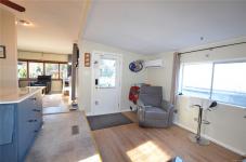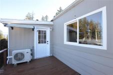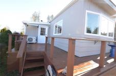 Recent upgrades include a new heat pump, new wood stove, newer hot water tank, washer/dryer combo still under warranty, new fridge, new blown-in insulation underneath the home, new flooring in most areas, and a brand new back deck. The bathroom has also been partially renovated. Parking for up to three vehicles, Very private backyard with ocean views. Pad rent $600/month. One pet allowed (up to 25 lb dog). RV/boat storage available. An excellent opportunity for comfortable coastal living with major upgrades already done.