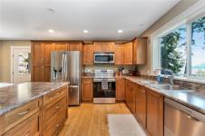 This Marble Bay property features 200 feet of private waterfront, complete with its own sandy beach, dock, and moorage. Situated within a quiet gated community, the home offers a sense of privacy and security that complements its natural surroundings. It is a solid, well-built residence in an exceptional lakeside location. The interior is open and bright, centred around a main living area with 18-foot cedar vaulted ceilings and a custom stone fireplace. Large windows look directly over the water, while private balconies provide a quiet space to take in the views. The layout also includes clear potential for a suite, offering a flexible space for guests, extended family, or rental income. It is a peaceful, secure retreat designed to make the most of life on the lake.