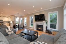 The perfect family home awaits. Built in 2014 this home offers a rare & sought-after floor plan w/4 spacious bedrms on the upper level. Tucked away on a quiet cul-de-sac adjacent to a natural green space park, enjoy exceptional privacy & tranquil forest views through floor-to-ceiling windows that flood the home with natural light. The no-step entry main floor features a bright, open living space ideal for family life and entertaining. The kitchen boasts quartz countertops, walk-in pantry, freestanding island, n-gas stove, and a window overlooking the backyard. The living room features a n-gas fireplace, park outlook, while a versatile family room works well as a media room, office, guest space, or playroom.