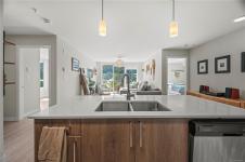Bright and spacious 2 bed, 2 bath condo just steps from Thetis Lake and some of the best trails and recreation on the island! This 950+ sq.ft. home features a functional split-bedroom layout and south-facing exposure for tons of natural light. The large kitchen includes quartz counters, stainless steel appliances, and ample workspace. The living room opens to a generous, private balcony — no neighbours beside or across — perfect for relaxing or BBQing. The primary bedroom features a walk-through closet and ensuite, with the second bedroom and bath on the opposite side. Includes a large storage room across the hall, 1 parking stall, and lots of visitor parking. Only 9 units in the building with just two other owners on your floor and storage lockers across the hall! On the Galloping Goose and E&N bike paths and walking distance to The Nest Café and Six Mile Pub. Building amenities include bike/kayak storage and a fenced dog run. Pet-friendly with no size restrictions!