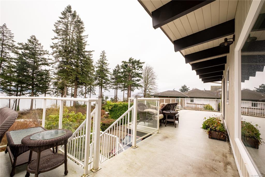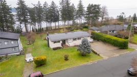 Your chance to acquire one of Campbell River's most prestigious addresses. Sweeping, panoramic views of Quadra Island and the passage from this tranquil, private and beautifully treed garden setting atop a secluded bluff. Beautifully renovated main floor with contemporary hardwood floors throughout, modern kitchen plus three bedrooms and two bathrooms. Spacious master bedroom and ensuite complete with walk-in closet and built-ins enjoys direct access to the ocean-facing deck that runs the entire length of the home and creates a covered area for the lower-level walkout. Accessed from a separate driveway beside the main driveway, the lower level features a one bedroom self-contained suite with an attached garage, ready for renovation or alternative uses. The expansive back yard adds yet another dimension of serenity to this almost half-acre lot.