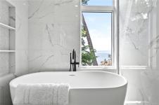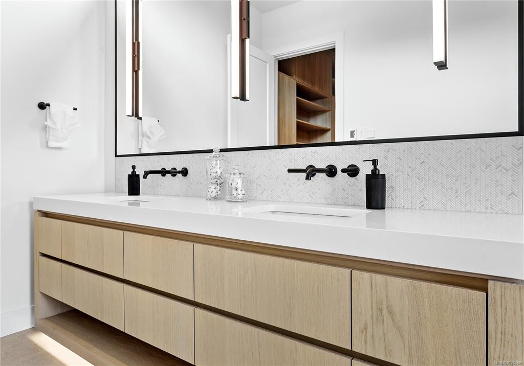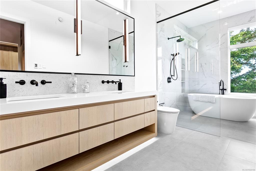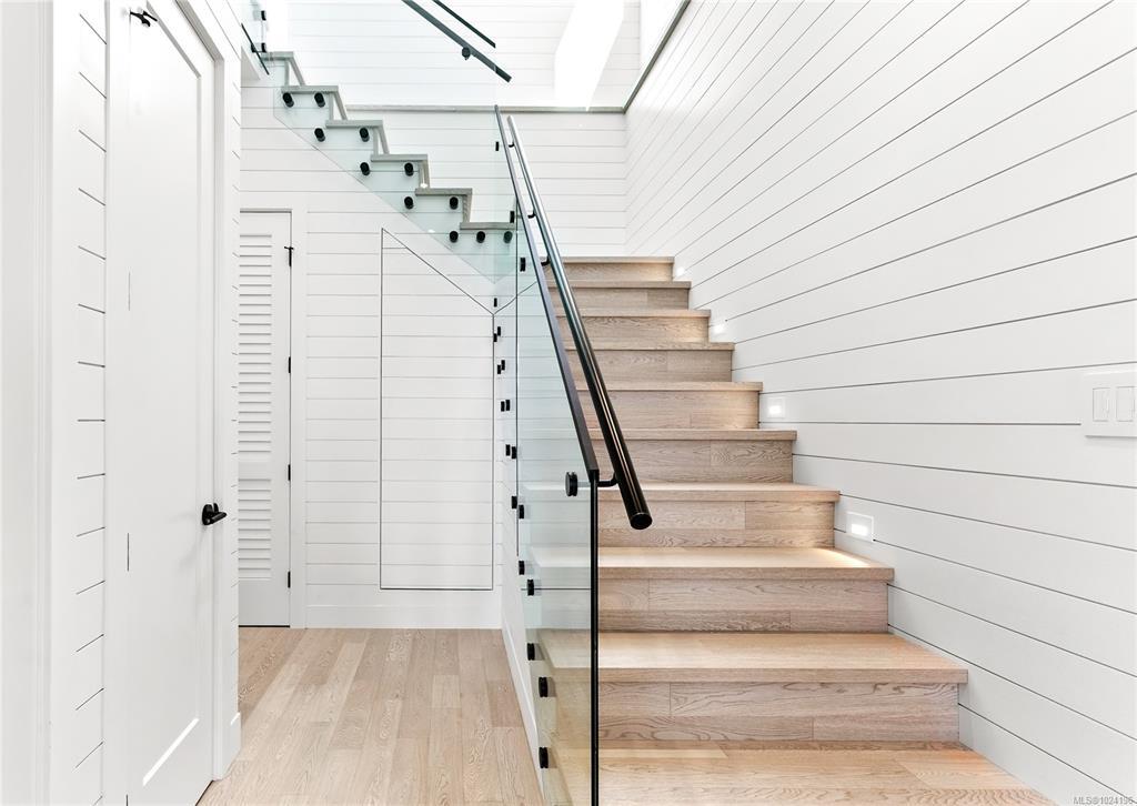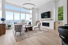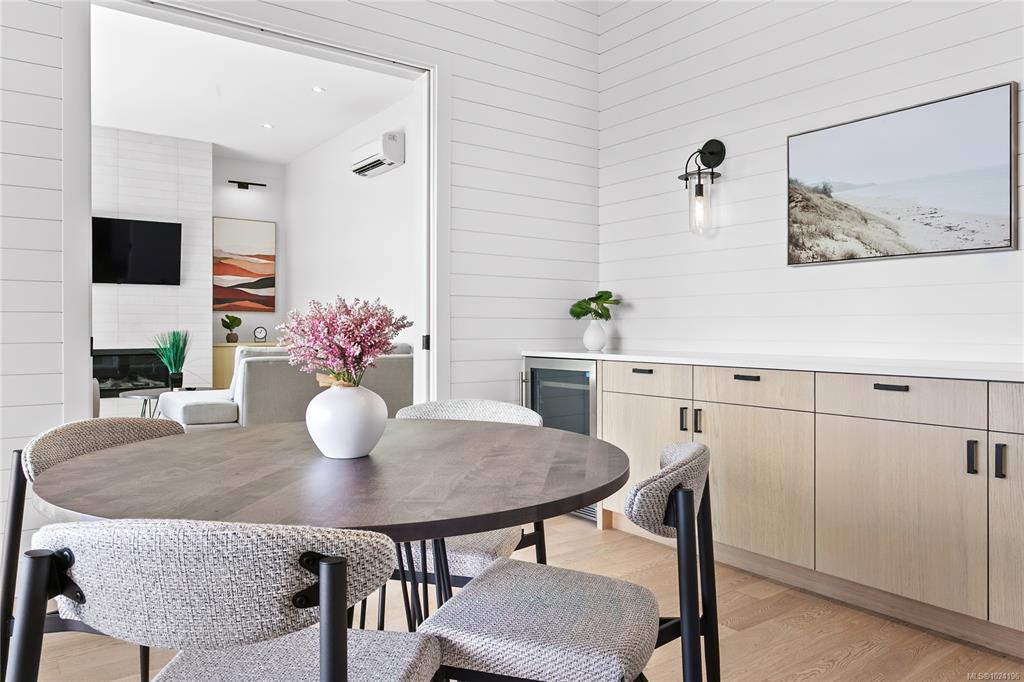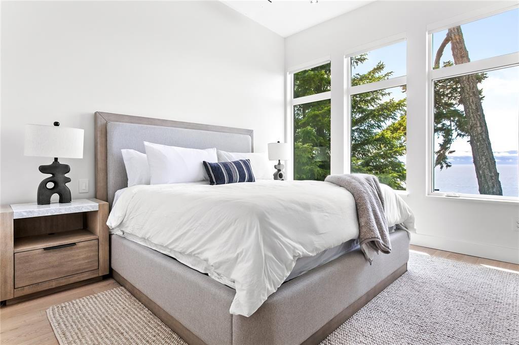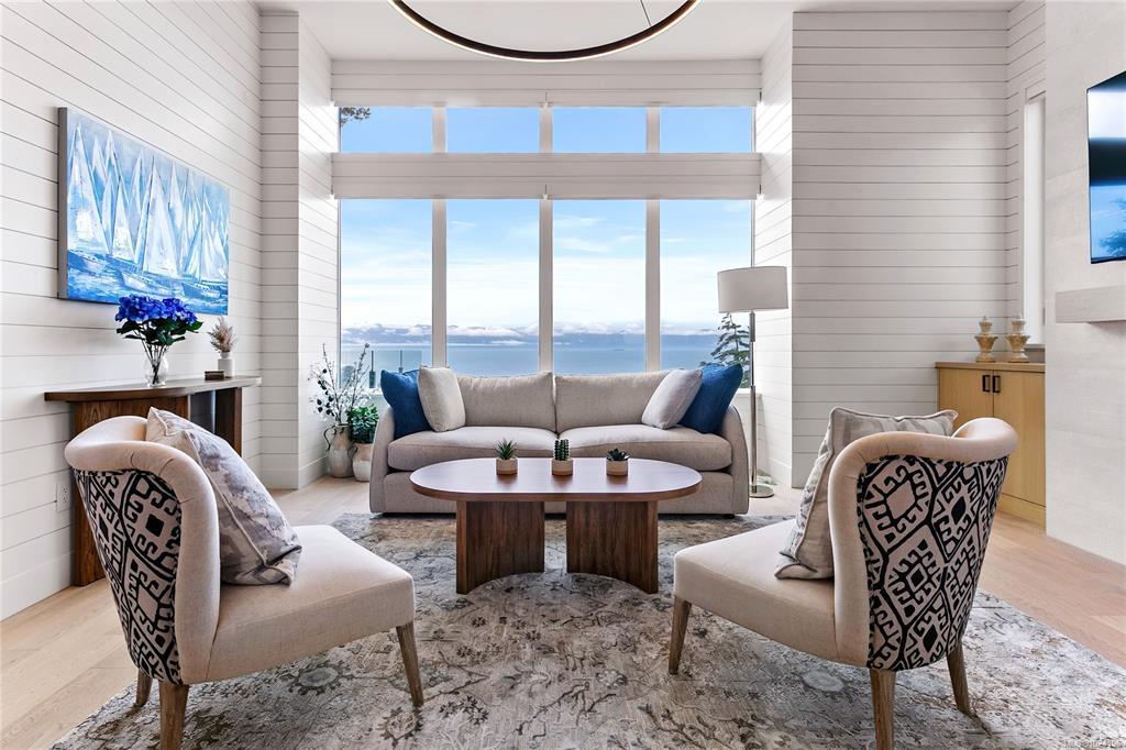 Experience unmatched coastal living in this west coast contemporary waterfront home along the stunning Juan de Fuca Strait. Completed in 2024, this 2,866 sq. ft. architectural residence features three spacious bedrooms, four bathrooms, and a versatile den perfect for a home office. Offered fully furnished (optional), it’s one of only seven custom oceanfront homes in Sooke’s first-of-its-kind luxury development. Interiors by Jenny Martin Design feature shiplap accents, panel-ready appliances, and refined millwork for ample storage. Enjoy an open-concept layout with ocean views, a designer kitchen, and fireplaces that add warmth and ambiance throughout. Dual laundry areas offer added convenience, while the advanced heating and cooling system provides individual climate zones. Whether as a full-time residence or a turn-key retreat, every detail is thoughtfully curated for coastal elegance and modern comfort.