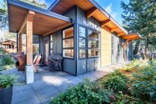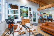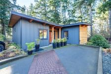 This striking West Coast–inspired home blends contemporary design with refined modern finishes.1,375 sq ft of thoughtfully designed living space, this impeccably maintained 3-bedroom, 2-bath residence showcases soaring ceilings highlighted by dramatic post-and-beam timber detailing and durable engineered hardwood flooring throughout.