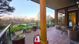 Nestled at the edge of the Cordova Bay Golf Course. Views of the fairways & the feel of a townhouse, this refined residence features exterior access, an expansive private patio in an exceptionally quiet setting. Oversized windows thoughtfully positioned to showcase these striking vistas, invite lots of natural light. Crafted by one of Victoria’s premier builders, the west coast–inspired building is elegantly clad in wood and stone, blending seamlessly with its natural surroundings. Just steps away from the picturesque Mattick’s Farm, Adrienne’s Tea & the Red Barn Market. Fabulous floor plan: 2 bedrooms & excellent separation for privacy. Oversized dining room against a dramatic backdrop & a beautifully appointed kitchen with granite countertops. The family room extends from the kitchen & opens onto the patio overlooking the golf course. Exceptional offering that delivers world-class living in one of Victoria’s most sought-after settings. Patio units do not come up for sale very often!