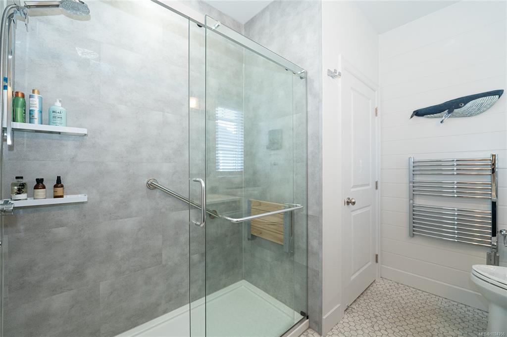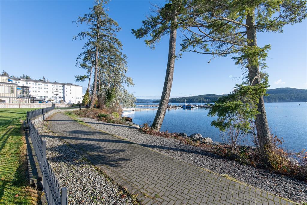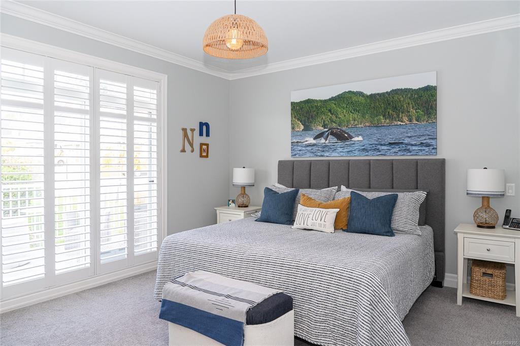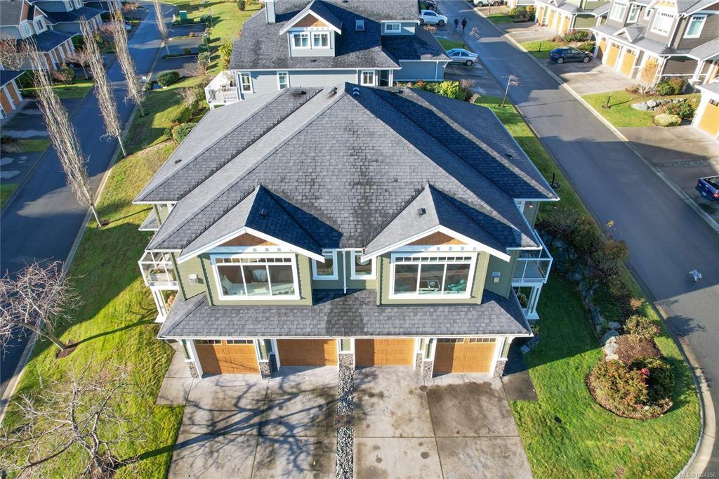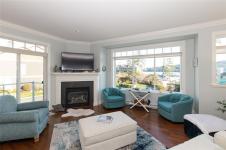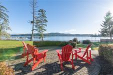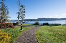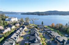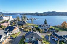 Rare Heron View town home offering some of the most magnificent, uplifting Ocean Views within this impressive oceanfront development. The upper main's elevated position overlooks the amenity centre & provides exhilarating views over the harbour, generous kitchen layout with quartz counters, SS appliances & gas cooking, white shaker cabinetry, mocha stained hardwood floors through the open concept main adjacent dining and spacious living room with gas fireplace and huge picture window to soak in those views! You'll love the master suite with NEW custom walk-in, ensuite & private patio with slider access. A 2nd large living room down with 2 bedrooms & 4 piece bath, rear patio round out the lower level. The townhome boasts a prized double garage with larger than average driveway. An amenity pkg beyond compare: Tennis, Swimming Pool, Gym, Sauna, Social Room, Social Gas Fire Pit. Nearby dining options, adjacent to marinas, launch your kayak from the private beach.
