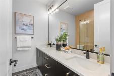 Welcome to this sophisticated, boutique development in a central, convenient location perfect for everyday life! No details have been overlooked in this collection of 4 newly built homes complete with designer finishes, superior craftsmanship & high end materials. As you walk in you will be impressed with the dedicated mud-room style entrance with built in bench, & an abundance of storage for kids & pets. The custom designed kitchen rivals that of any single family home with a huge waterfall style island, plenty of storage, quality appliances, & an aesthetic colour scheme plus a dedicated home office space located off the kitchen with a beautiful glass door! The living & dining area are also finished anything but "Spec" with acoustic style feature walls, built in fireplace & contemporary chandelier. Upstairs there are 3 generously sized bedrooms including a primary with walk in closet & luxurious ensuite.