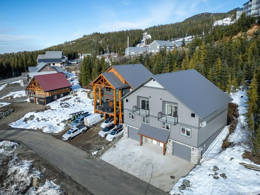 New 2,155 sq. ft. half duplex at Mount Washington, less than a 5-minute walk to the Hawk chairlift! Completing by the end of January, this three-level home features 4 bedrooms on second floor, including a spacious primary bedroom with large 3-piece en-suite and laundry hook-up adds convenience. The open-concept main level third floor offers durable vinyl strip flooring, a bright kitchen with white shaker cabinets, quartz counters, and pantry, flowing to the dining and living areas. A southwest-facing balcony off the living room provides sunny views of Strathcona Park. The oversized 600+ sq. ft, double-stacking garage offers exceptional storage for vehicles and gear. Built with hardie plank siding, rock accents, metal roof, a heat pump for year-round comfort plus home warranty for piece of mind -perfect for investment, mountain living or a getaway steps from the slopes! $8000 appliance allowance included at completion.