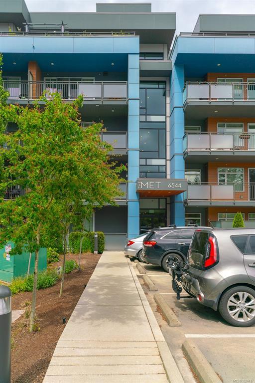Welcome to The Met—North Nanaimo’s hub of style and convenience. This bright and modern 1-bed 1-bath condo offers contemporary design and unbeatable walkability to over 200 shops, cafés, and restaurants. The open-concept layout features 9-ft ceilings, large windows, and high-end stainless steel appliances, creating a space that feels both spacious and inviting. Enjoy a well-appointed kitchen with two-tone cabinetry and an eating peninsula, a comfortable living area that opens to your private balcony, and a cozy bedroom with ample closet space. A separate laundry room with