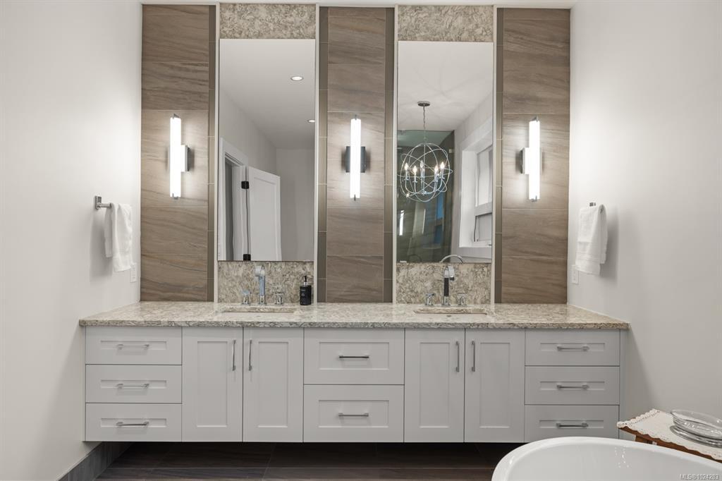 BEAR MOUNTAIN PARADE OF HOMES Saturday January 31st, 1-3pm......Custom built by New West Developments, this exceptional home showcases refined design and superior craftsmanship. An oversized pivot door opens to a spacious entry and open-concept living, dining, and kitchen finished with white oak engineered hardwood. The chef's kitchen offers quartz countertops, stainless steel appliances, wine fridge, abundant cabinetry, hot water on demand, and a concealed pantry behind a custom wine rack. The main-level primary suite features French doors to the private rear yard, walk-in closet, modern concrete fireplace, and spa-inspired ensuite with freestanding tub, rainfall shower, and heated floors. A generous main-floor den with custom French doors is ideal for a home office. Upstairs includes two bedrooms, a full bath, and a bonus loft overlooking the main living area. The private backyard is an entertainer's retreat with dual water features, flagstone courtyard, irrigation & curated lighting