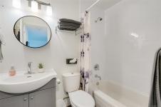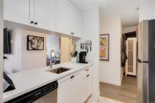 Open house Thursday, January 29th 3:30-5:00. Stylish and updated south facing unit in a steel and concrete building. Built-in dining room storage, as well as a home office desk in the bedroom, makes this a very functional space. Vinyl plank flooring throughout, updated kitchen with stainless steel appliances and herringbone flooring pattern right on style trend. Bathroom with clean and newer tub surround, and updated flooring and fixtures. Parking wait list available (approximate time is 3 months). The building offers a gym and steam room, dedicated bike storage, on-site caretaker. The laundry room has plenty of commercial machines-takes the worry of leaking and the maintenance of the machines out of your suite. Nothing to do but unpack!
