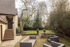 Set on a quiet, tree-lined curve in the heart of the Uplands, this classic Tudor offers timeless architecture, exceptional privacy, and a rare sense of calm. The home blends storybook charm with light-filled interiors and thoughtful updates that respect its original character. Warm hardwood floors and generous principal rooms create an inviting atmosphere for everyday living and entertaining. The living and dining areas flow naturally, anchored by traditional fireplaces and large windows that fill the home with soft natural light. Upstairs features peaceful, well-proportioned bedrooms, including a spacious primary ideal for family, guests, or a home office. The lower level includes a comfortable rec room, and benefits from a separate exterior entrance. Outdoors, the southwest-facing backyard enjoys wonderful afternoon and evening sun providing privacy and tranquility. A true Uplands classic, offering architectural beauty, functional living space, and enduring appeal.