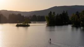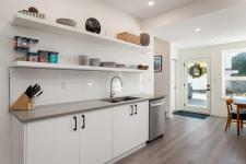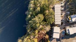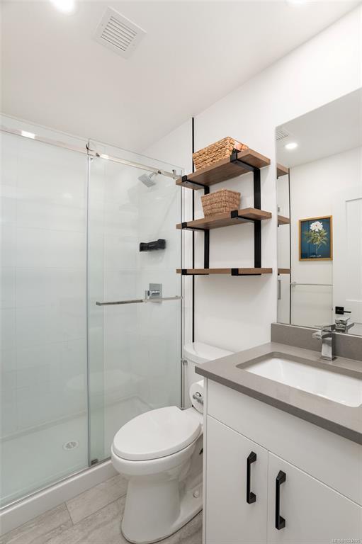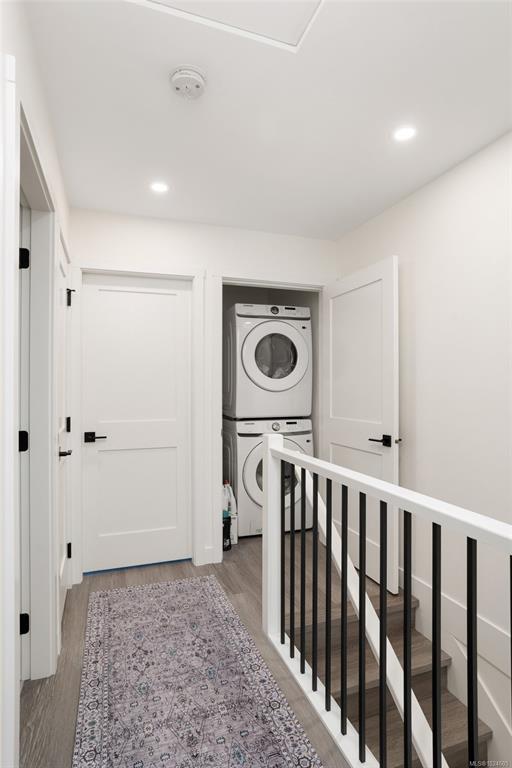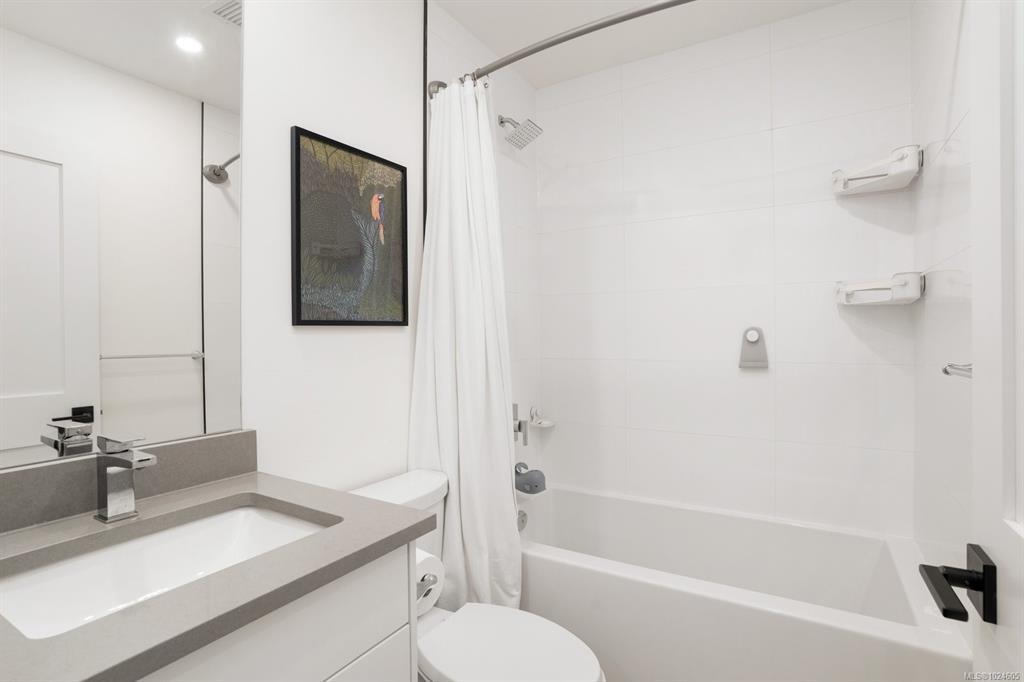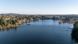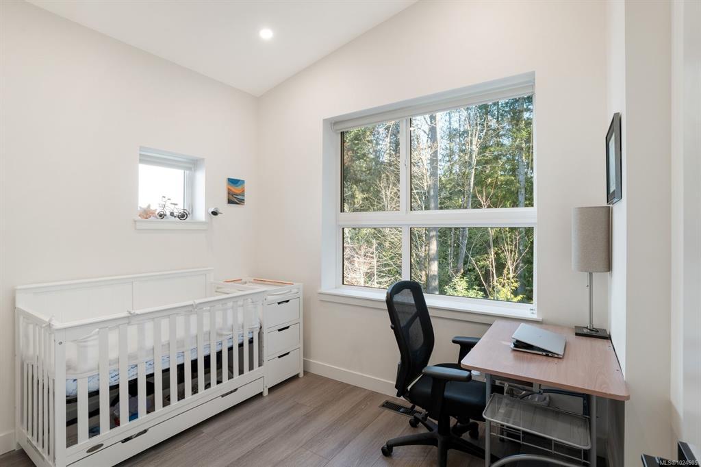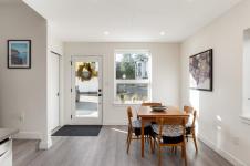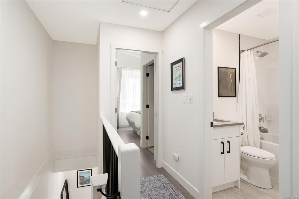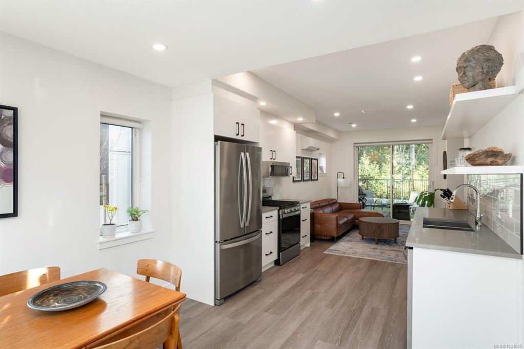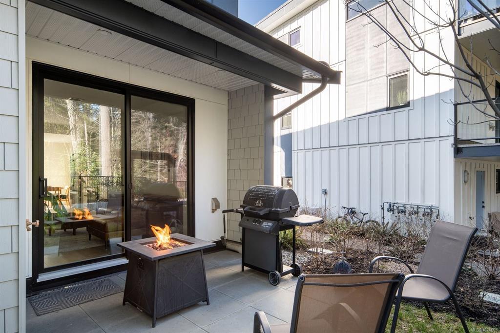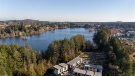 Tucked at the end of a quiet cul-de-sac, this 2024-built corner unit townhouse offers rare privacy, backing directly onto green space and Langford Lake. Extra windows flood the open-concept layout with natural light, creating a bright, welcoming space for everyday living and entertaining. The well-designed 2 bedroom, 2 bathroom plan is ideal for first-time buyers or those seeking a condo alternative without shared hallways or elevators. Step outside to a deep, private patio surrounded by nature—perfect for relaxing or entertaining. Two parking spaces, an attached storage shed for bikes and paddle boards, and trails and lake access at your doorstep support an active lifestyle. Remaining New Home Warranty, heat pumps, and on-demand hot water provide comfort and efficiency. Why buy a condo when you can own a townhouse immersed in nature?