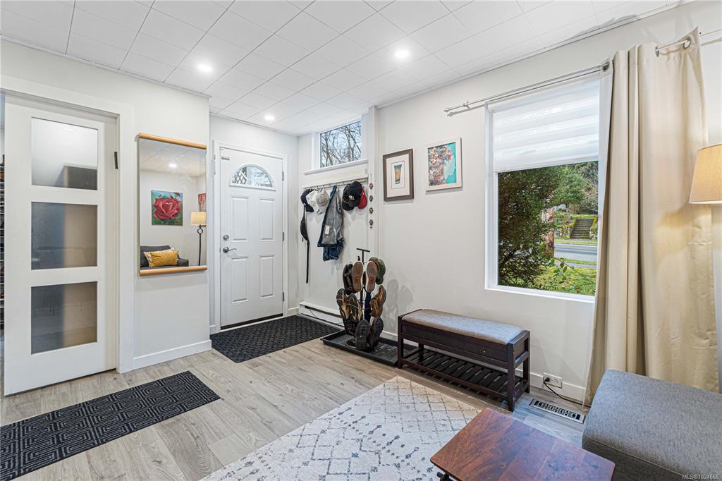 A pellet stove and a gas furnace provide cozy warmth during the winter months. Downstairs, the basement offers flexibility for an additional family rec or game room or even a bedroom. The massive double garage with convenient lane access offers ample parking. Walk to the Sea Wall, Bowen Park, and downtown in minutes! Two of the bedrooms don't have a closet. All information provided must be independently confirmed by Buyer if deemed material.