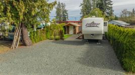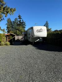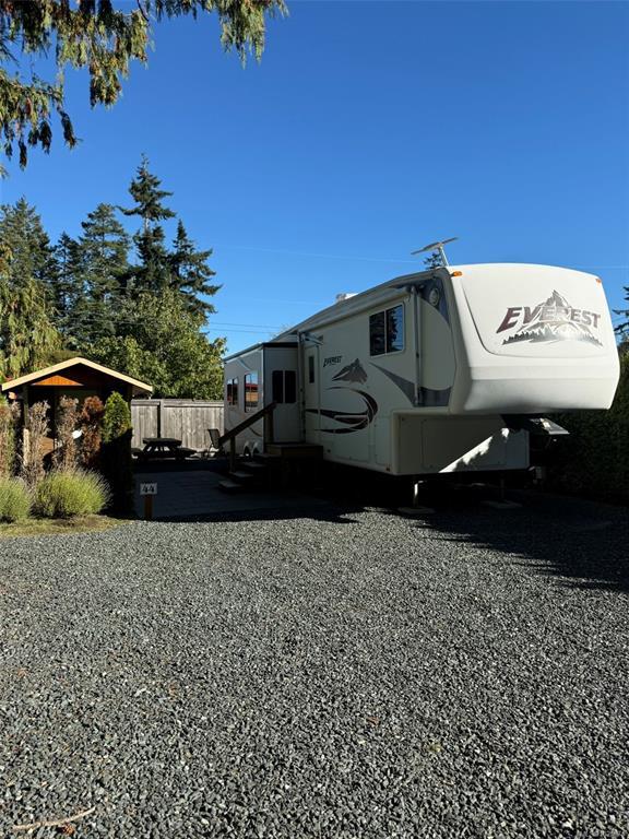 Welcome to Site 44 in Baywater Estates, a beautifully landscaped retreat just steps from the ocean in Qualicum Beach. This private and fully serviced lot features a 2006 Keystone fifth wheel in excellent condition—offering comfort, functionality, and style in a peaceful, park-like setting. The outdoor space is a true highlight, with lush gardens, stone pathways, and mature greenery creating a tranquil atmosphere for relaxing or entertaining. A brand-new storage shed adds convenience and clean organization for tools and outdoor gear. Baywater Estates offers resort-style amenities including 30-amp power, clubhouse access, laundry, and walk-on waterfront nearby. Whether you’re seeking a seasonal getaway, year-round living option, or an easy island escape, Site 44 delivers the perfect balance of comfort, community, and coastal charm.