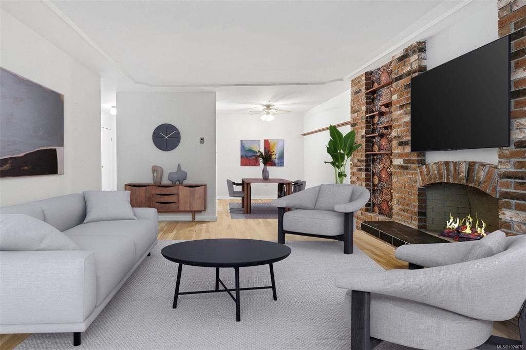 Welcome to this centrally located condo offering exceptional convenience and comfortable living in the heart of Saanich. This well-laid-out home features a spacious primary, in-suite laundry and an enclosed sunroom for additional office space, storage or flex use. A galley kitchen opens into a casual dining space that flows into an open and bright living room. With stunning new engineered waterproof hickory flooring, large back patio and just steps from Tillicum Mall, Pearkes Recreation Center and Hampton Park this home is a must see.