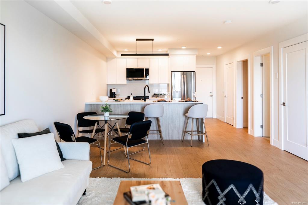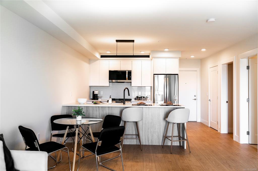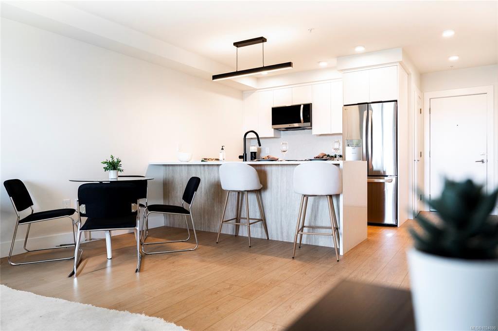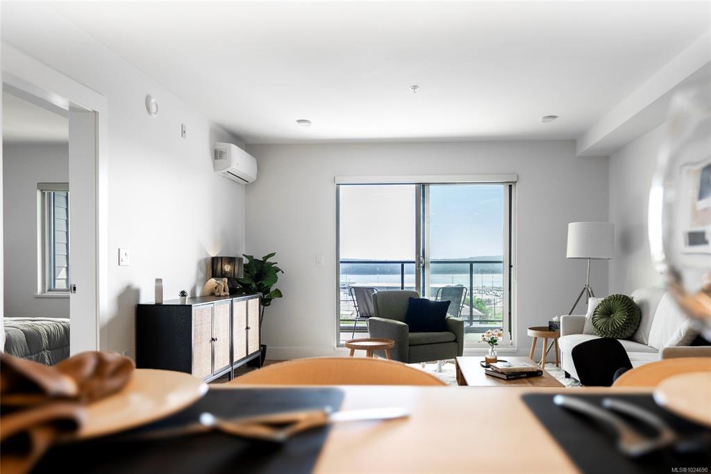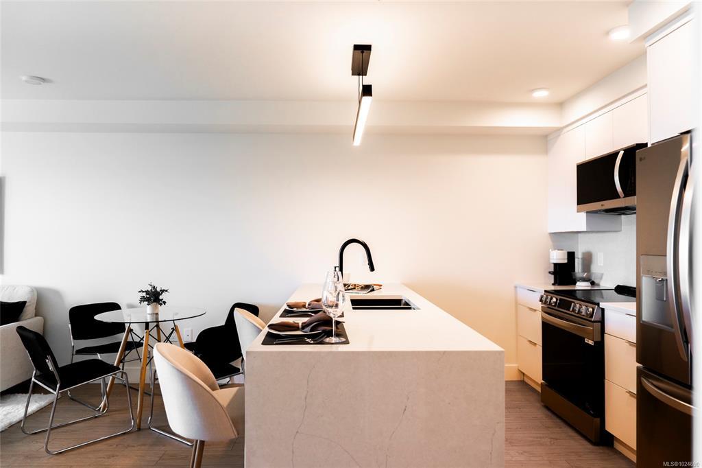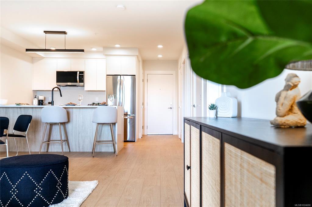 Welcome to Lumina, in the heart of Nanaimo’s Harbourview District — a Principal Property community where modern living meets coastal charm. Just steps from the harbourfront, seawall, cafés, shops, parks, and the Hullo Ferries, Lumina places you at the center of a vibrant, evolving neighborhood. This lovely residence offers a refined blend of style and comfort, featuring bright open-concept living, high-end finishes, and a spacious balcony with sweeping city and harbour views. Every element — from the quartz waterfall countertops and smart appliances to the soft-close cabinetry — reflects thoughtful design and attention to detail. Residents also enjoy access to Lumina’s stunning rooftop terrace — an elevated retreat with panoramic harbour and mountain views, perfect for morning coffee or sunset gatherings. Blending the best of coastal urban living, this home is more than a place to live, it’s a front-row seat to downtown Nanaimo’s vibrant future.