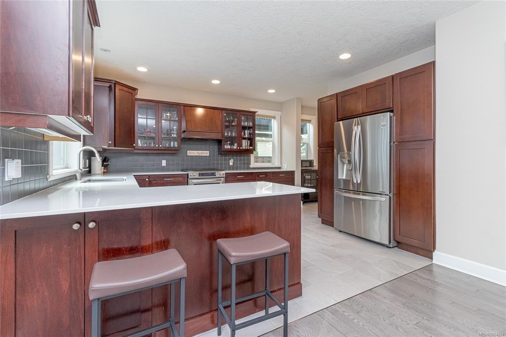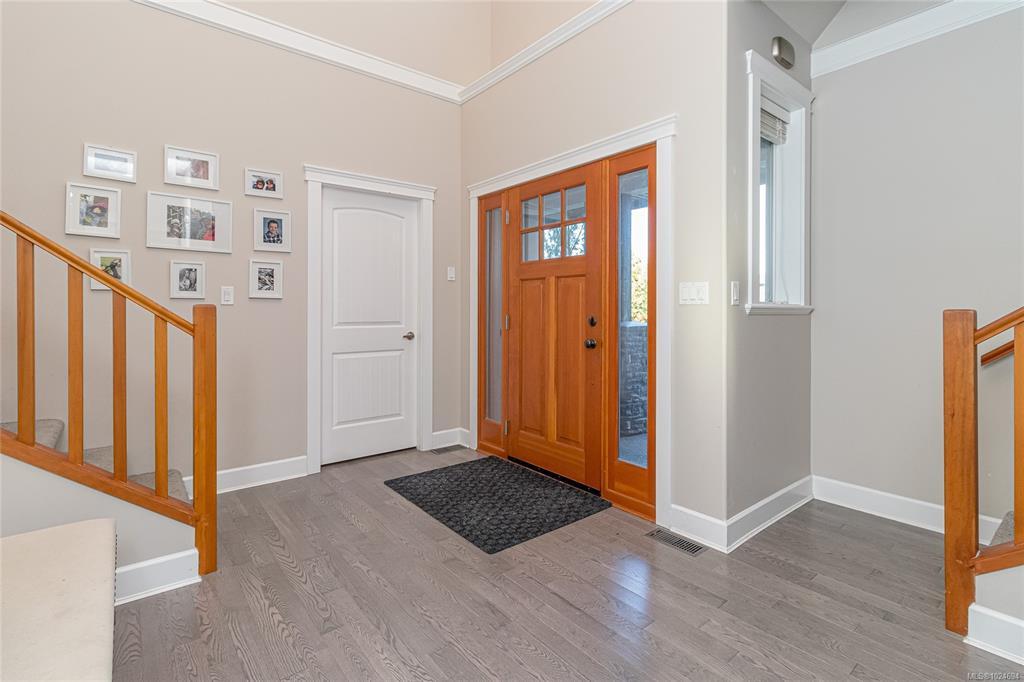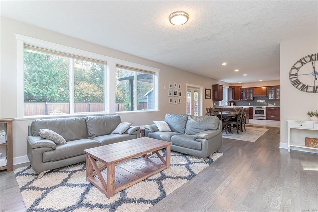 Welcome to this highly sought-after Mill Springs family home. This beautifully custom-built 2700 sq ft residence offers 4 bedrooms, 4 bathrooms, and a dedicated office. The heart of the home is a bright, open-concept kitchen and dining area featuring a natural gas stove, while a heat pump provides year-round comfort. The spacious primary suite with vaulted ceilings creates a light-filled, peaceful retreat. Above the garage, a versatile rec room with its own bathroom is perfect for guests and can easily convert into an additional bedroom. Step outside to enjoy a newly landscaped backyard, mature trees, and forested parkland directly behind the property for added privacy. Set on nearly ¼ acre north of the Malahat, this welcoming location offers tranquility with convenience—just 30 minutes to Victoria. With a new roof and fresh interior and exterior paint, this move-in-ready home invites you to enjoy the lifestyle it offers.