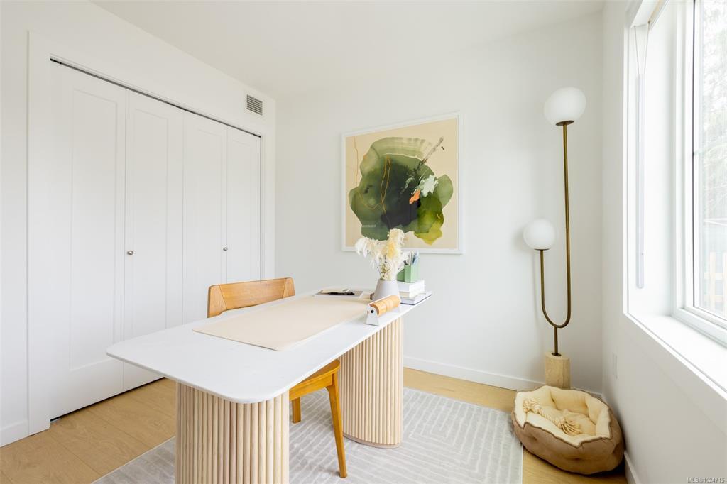 Welcome to Greyson, a brand-new community of naturally inspired family-sized townhomes by award-winning Abstract Developments. Just completed and one of the only townhomes in Saanich offering a true EV-ready, side-by-side 2-car enclosed garage, this rare 4 Bed, 3.5 Bath end home delivers both space and long-term livability. Offering 1,555 sq ft, the home features 9’ ceilings, generous windows, and a bright main living area with a well-appointed kitchen showcasing quartz countertops, shaker-style cabinetry, stainless-steel appliances, full-height pantry & built-in desk. Enjoy two private outdoor spaces including patio framed by lush landscaping and classic white picket fencing. Located minutes from the amenity-rich Uptown Shopping District and the Galloping Goose trail, Greyson is perfectly positioned between the city’s outer limits and the downtown core for seamless connectivity within Victoria and beyond. Optional upgrade for AC available and 10-year home warranty. Price + GST.