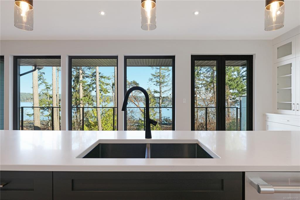West Coast waterfront living at its finest.This exceptional, newly built walk-on oceanfront home is set on 0.57 acres with 90' of pristine frontage, gracefully positioned on the tranquil Ships Point Peninsula. Designed with refined coastal elegance, the home showcases wide-plank white oak floors, bespoke cabinetry, a chef-inspired kitchen with premium Thermador & Wolf appliances. The open-concept living area is anchored by a striking Napoleon fireplace, while expansive wall-to-wall windows capture breathtaking, ever-changing ocean views. Step onto the generous deck to dine al fresco, unwind, & enjoy the vibrant marine life. Offering three bedrooms plus versatile flex spaces, including a potential walk-out lower-level secondary suite. Easy shoreline access for kayaking & spectacular sunrise beach walks.The detached garage features a separate 200-amp service, generator, & carport—ideal for boats or RVs. Backed by a 2-5-10 warranty, this is coastal living perfected. Short drive to Comox.