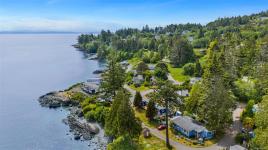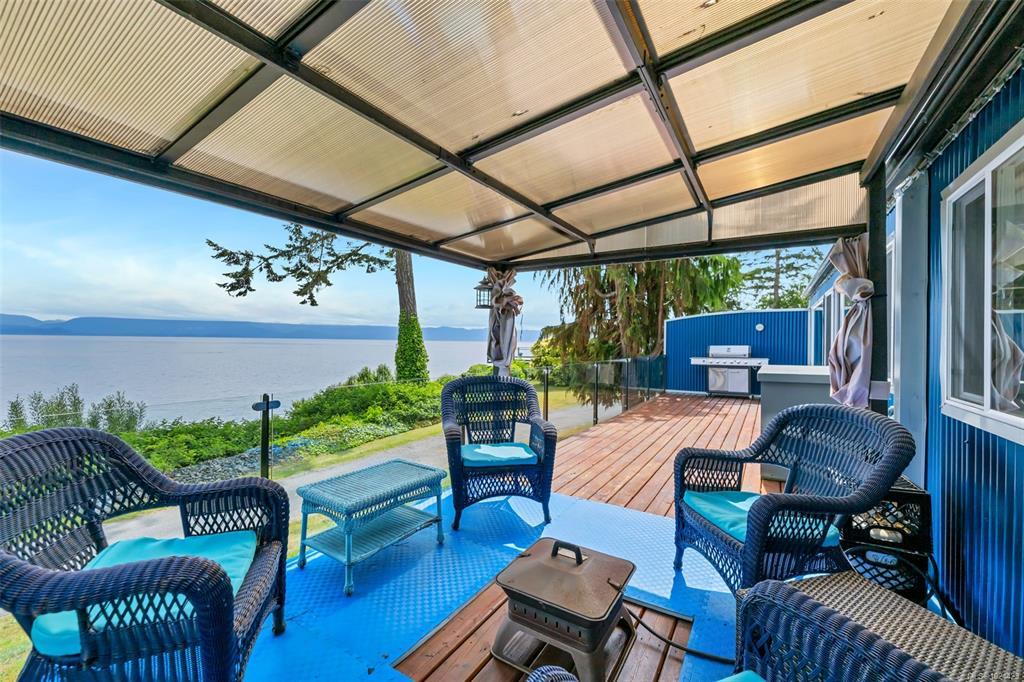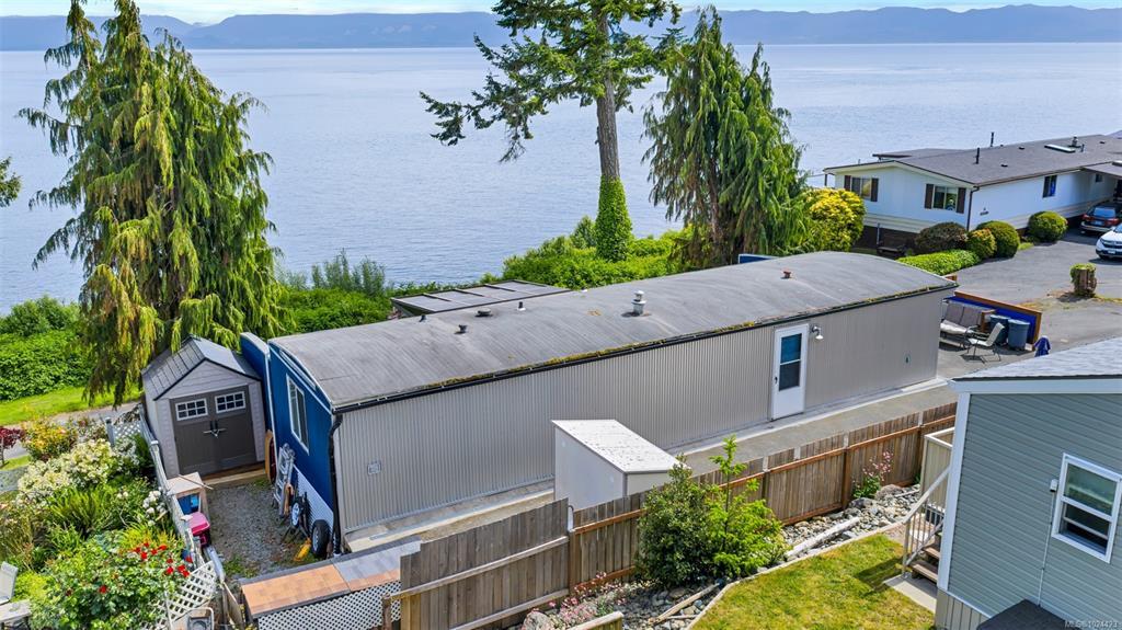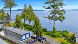Fulfill your dream of oceanfront living—without the oceanfront price tag! This stylish,contemporary mobile home is ideal for the modest consumer of any age seeking a low maintenance lifestyle! Imagine beachcombing, soaking in an ever-changing ocean view, witnessing orcas & more while nestled near a mature eagle’s nest. Drink in incredible views from the kitchen, livingroom or primary bedroom. Embrace the outdoors from the expansive deck oasis. Launch the kayak or boat nearby & experiece this authentic naturalist’s haven.Professional updates inside and out including deck reinforcement & transparent railings, vapor barrier, corrugated metal siding, copper wiring, large vinyl windows, new kitchen, flooring, trim, plumbing and fixtures. This stylish home offers comfort & peace of mind while delivering a stunning coastal setting. 10 minutes from the town of Sooke with easy access to shops,services,dining & recreation. Pets welcome; 1 dog under 20 lbs & 1 cat, or 2 cats, ample parking too.