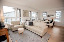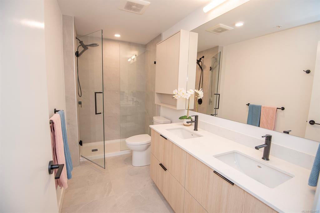 Experience the best of west coast living in the Eliza at Royal Bay. This spacious 2 bed, 2 bath corner suite has the largest floorplan in the building plus a covered 277 sq. ft. west-facing deck where you can enjoy a morning cup of coffee & the gorgeous sunsets. The beautifully designed interior space offers a relaxing palette of colors w/lots of natural light, a dream kitchen w/quartz counters & SS appliances, soft-close cabinetry, elegant finishing materials, generous primary bdrm. Amenities for residents at the Eliza incl. a fully equipped fitness facility/gym, pet washing station, roof top patio w/BBQ kitchen, 2 social lounges, community garden plots & a ground level common patio & BBQ area. Includes 2 secured parking stalls, 2 bike storage racks & a storage locker plus it’s close to everything in this vibrant seaside neighborhood….the beach, parks, schools, walking/running/biking trails, golf, grocery stores, cafes/restaurants, shops. This is a good one…come and see!