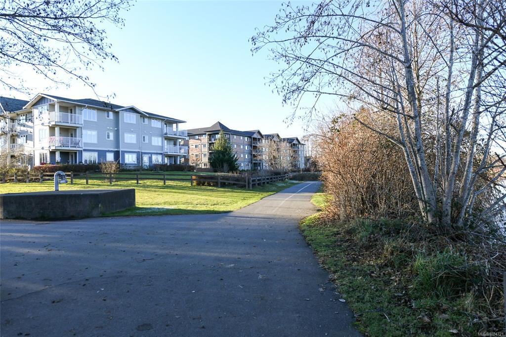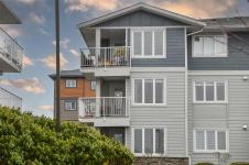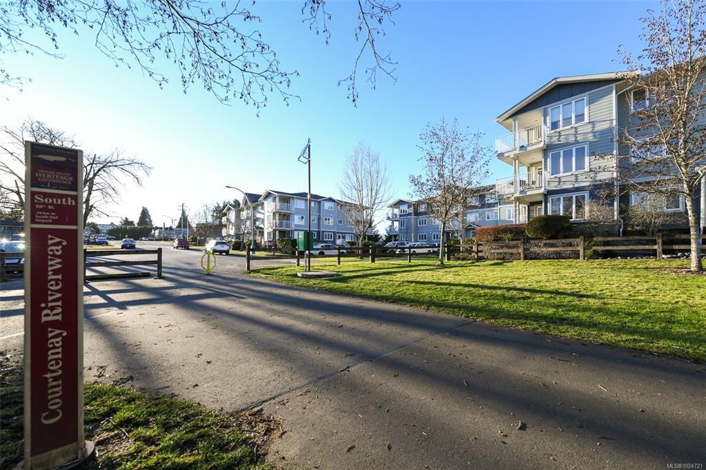 This well-maintained, 2 bed/2bath, corner-unit condo in The Tides is centrally located with mountain views & glimpses of the river. Stroll out your front door & in a few short steps you’re on the scenic Courtenay Riverwalk that winds along the river & estuary, as well as the oceanside Airpark Trail. This bright unit features open plan living with large windows & a spacious covered deck off the dining area. The efficient kitchen offers maple Shaker cabinetry & ample counter space & the living room has a cosy electric fireplace. The primary bedroom includes a walk-through closet leading to a private ensuite. Features: in-suite laundry with stacking washer/dryer, newer hot water tank (2023), building elevator & 1 secure underground parking space & storage unit included. Fantastic opportunity for comfortable, low-maintenance living in a sought-after location close to downtown amenities.
