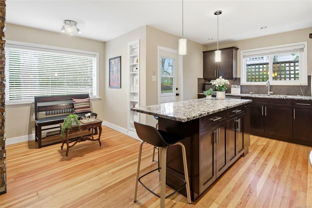 NEW LISTING in one of Victoria’s most sought-after, idyllic neighbourhoods. This extensively updated yet charming character home offers timeless details & improvements, on a quiet street, centrally located. Main flr features 4 beds (2 w decks), 2 full baths, living, dining & kitchen. Character cove ceilings, oak inlaid & fir flrs, rounded corners, mantle, wood drs, era glass knobs. 1 wood + 1 gas (2 sided) fp, picture windows. Updated kitchen w stone counter, grand island, breakfast nook, SS appls w 5 burner gas stove. Primary bed w built-in vanity & two closets. Lower level: 2 rev-gen suites, each w private access. Home totals: 3 kitchen, 2 laundry, 4 bath. Ample storage. Fully fenced/gated yard w 4 decks, 2 car garage/ workshop + carport, +RV/boat parking. UPDATES: landscape, paint, gutter clean, roof demoss, chimney re-pointed 8 yrs, 200-amp, gas boiler w radiators 2013, HW tank 2018. Close to schools, Cedar Hill chip trail, Mt. Doug, quick access to downtown, Uptown & hwy.