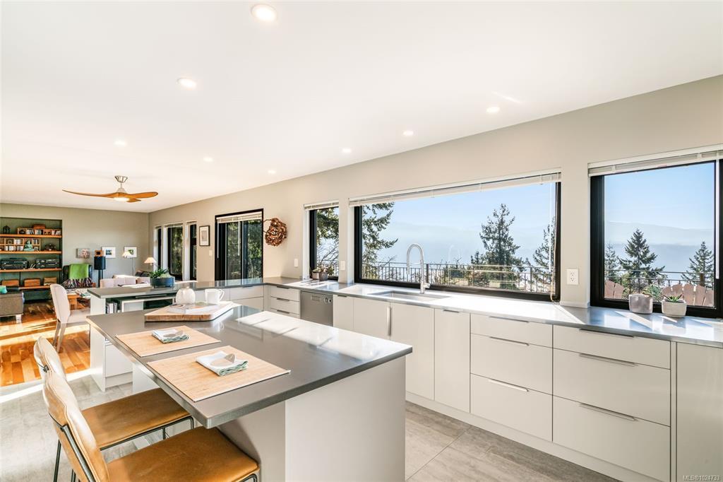 Nanoose Bay Ocean View Home with Carriage House Suite! Bright and beautiful 2 Bed/2 Bath Rancher on a .89-acre park-like property nestled on a hillside overlooking the bay and bordering Notch Hill Park. This captivating home boasts a one-level layout, south-facing outdoor living space, heat pumps and gas FPs, lots of parking and storage, and OS windows capturing commanding views across the Bay of Nanoose to the forested hills and Island Mtns beyond. Also a Detached Dbl Garage with a Carriage House, and RV prkg. From the foyer, cherry hardwood floors flow into a bright Great Room with wall-to-wall windows and stunning views. The Living and Dining areas open to a lrg SW-facing deck for outdoor living. The reno'd Kitchen offers in-floor heating, an island, coffee station, and premium appliances. Two Bedrooms share a 3-pc Bath, plus an Office, Laundry, and Music/Flex Room. Mins to golf, trails, and marina, short drive to Parksville, and North Nanaimo. Visit our website for more info.