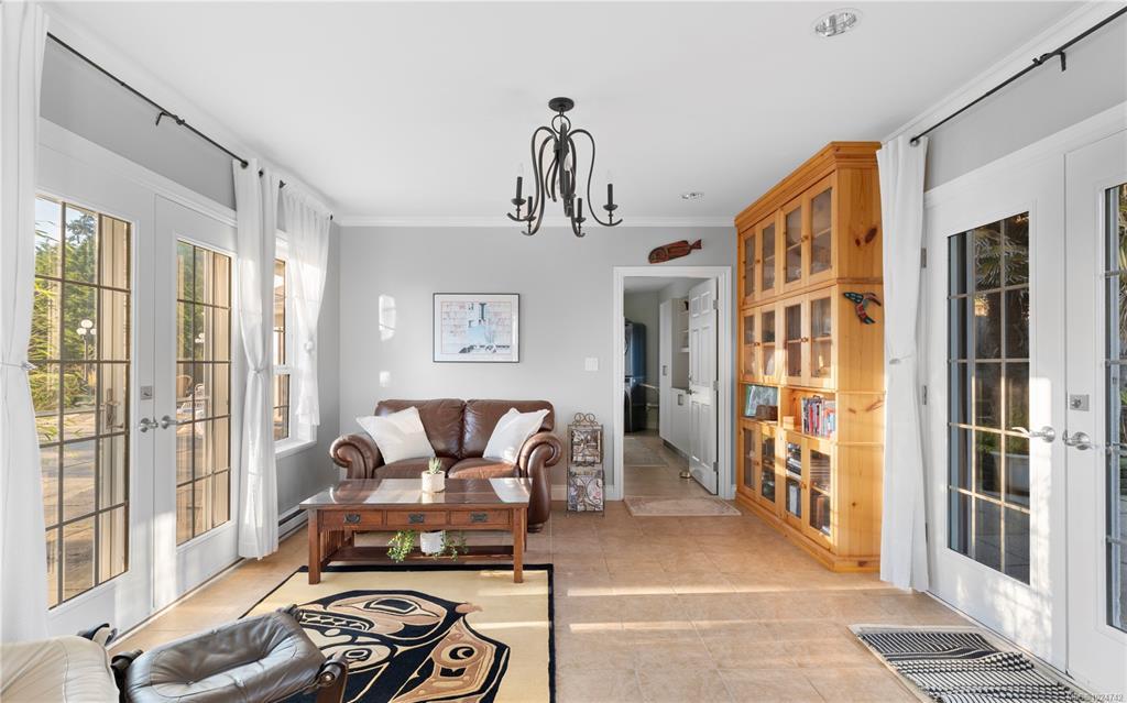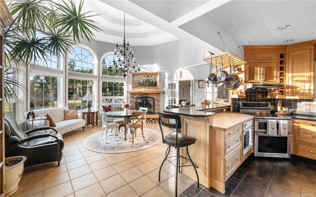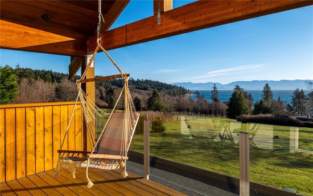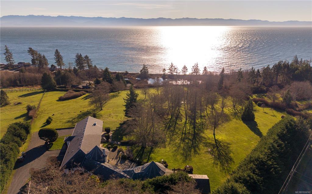 Welcome to 4690 Otter Point Pl! Situated on 6 park-like acres overlooking the coastline and Olympic Mountains, this extraordinary estate offers privacy, architectural distinction, and connection to nature. Spanning 4,700+ sqft with soaring ceilings, 2 dramatic turret-style spaces, and expansive windows framing ocean/mountain scenery throughout. Inviting kitchen/dining area warmed by statement wood-burning fireplace. Primary suite with vaulted ceilings, solid oak flooring, fireplace, deck, custom walk-in and spa inspired ensuite. 2 more flexible living areas = enjoy home in entirety or configure for multi-gen living, live-in support, or income opportunities! (currently 2 successful vacation rentals). Patios, open lawns, pergola - multiple outdoor gathering spaces. Accessibility features on main (ready to customize). 10 mins to Sooke, 25 mins to Langford, 45 mins to Victoria. An opportunity to experience refined West Coast living on beautiful, usable acreage with endless possibilities!