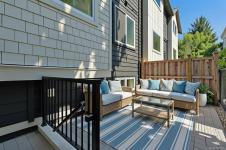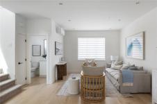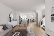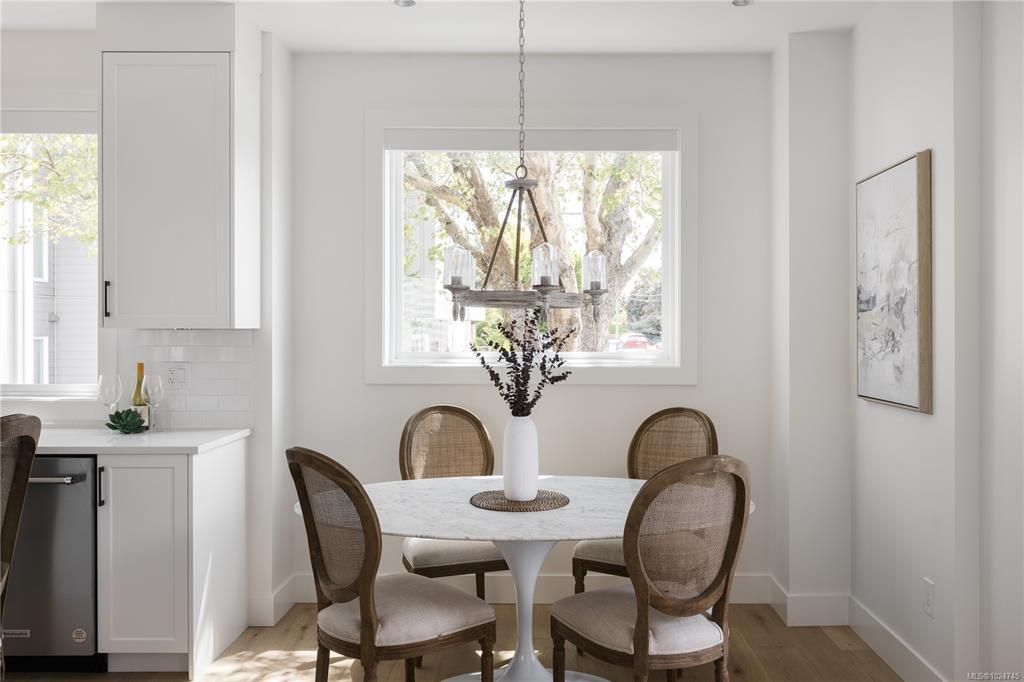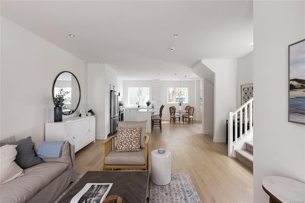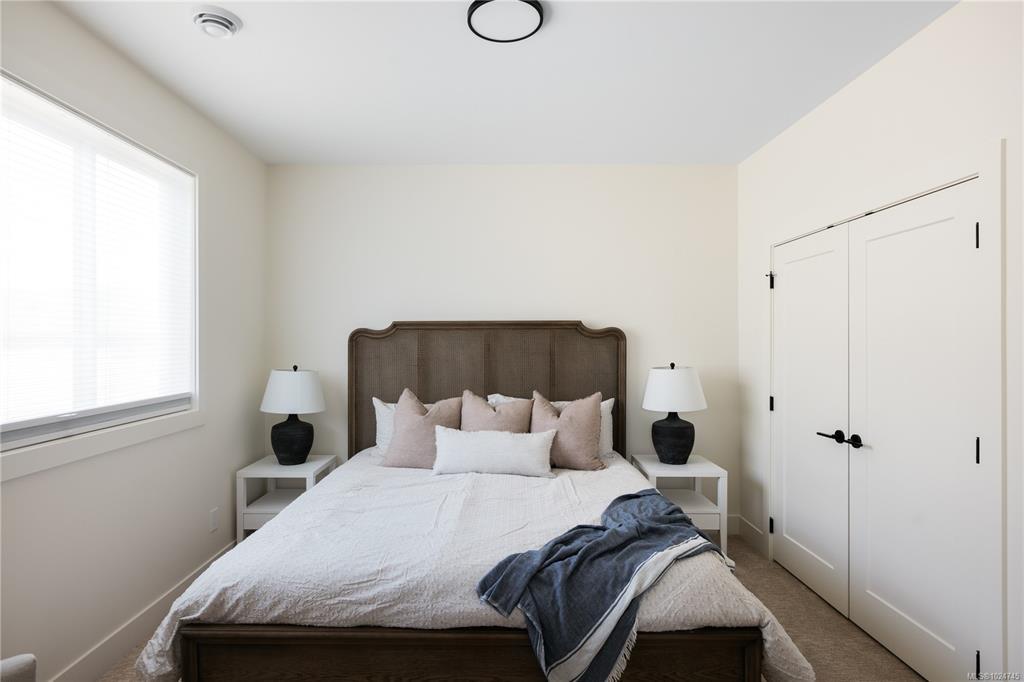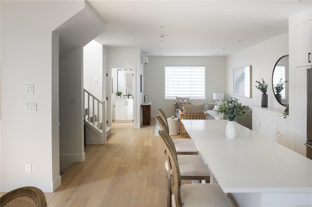 OPEN HOUSE Saturday 1-3PM. Proud to present The Bayside Towns on Fifth - a curated collection of 16 townhomes in Sidney's most desirable neighbourhoods, ROBERT'S BAY. Offering a modern farmhouse aesthetic & varied layouts appealing to young families through to active retirees. This larger end location plan offers 3 spacious bedrooms on the upper level including the primary with ensuite. 4th bedroom or office located on the lower level with its own 3 pce bath. Light wide-plank hardwood throughout entry and main level plus large picture windows that will keep the home light & bright. Custom white kitchen cabinets with quartz counters, generous island & stainless appliances. Efficient heat pump for year round heating and cooling. In-floor heat in all tiled bathrooms. Interlocking brick, fully fenced southeast facing patio with irrigation. Close to beaches, trails and easy walk to Beacon Ave, this is a 12/10 location!