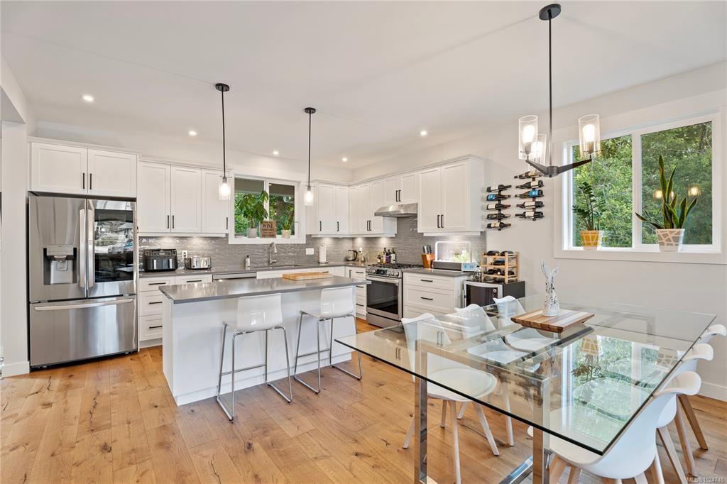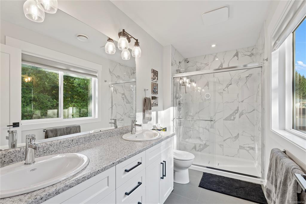 Superb home in a sought-after family neighbourhood! Located in Parkwalk at Maple Bay, this 3-year-old, 2,555 sq. ft. home sits on a beautifully landscaped 0.19-acre lot backing onto green space for added privacy. The main level offers open-concept living with a natural gas fireplace, heat pump, & a spacious kitchen featuring a large island, pantry, and premium LG appliances. Step through the sliding glass doors to a generous 26’ x 10’ covered deck—perfect for entertaining. Upstairs you'll find three bedrooms, a 5-piece main bath, & a spacious primary suite with a 4-piece ensuite & large walk-in closet. Bonus: a legal 1-bedroom suite with full kitchen, eating nook, living area, 4-piece bath, and all new LG appliances—ideal for family or rental income. The extra-long garage offers space for a workshop and includes 100 sq. ft. of overhead shelving & 240 V EV plug. Ample RV parking and a foundation ready for a future shed/workshop. Just steps from Maple Bay School, sports fields, & courts!