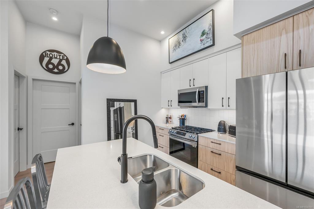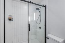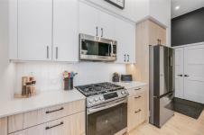 Inside, every detail balances beauty and performance. The gourmet kitchen features quartz surfaces, elegant tilework, and a full stainless steel suite with a gas range ready for inspired cooking. Year-round comfort flows through ductless heat pumps, anchored by a sleek linear fireplace that adds warmth and modern style.