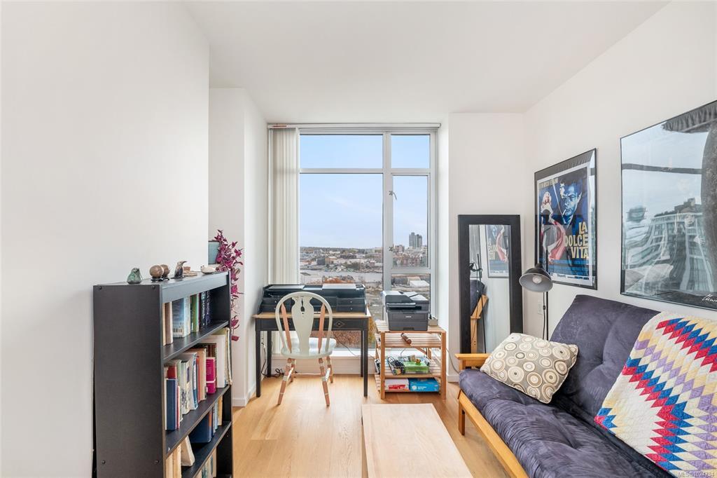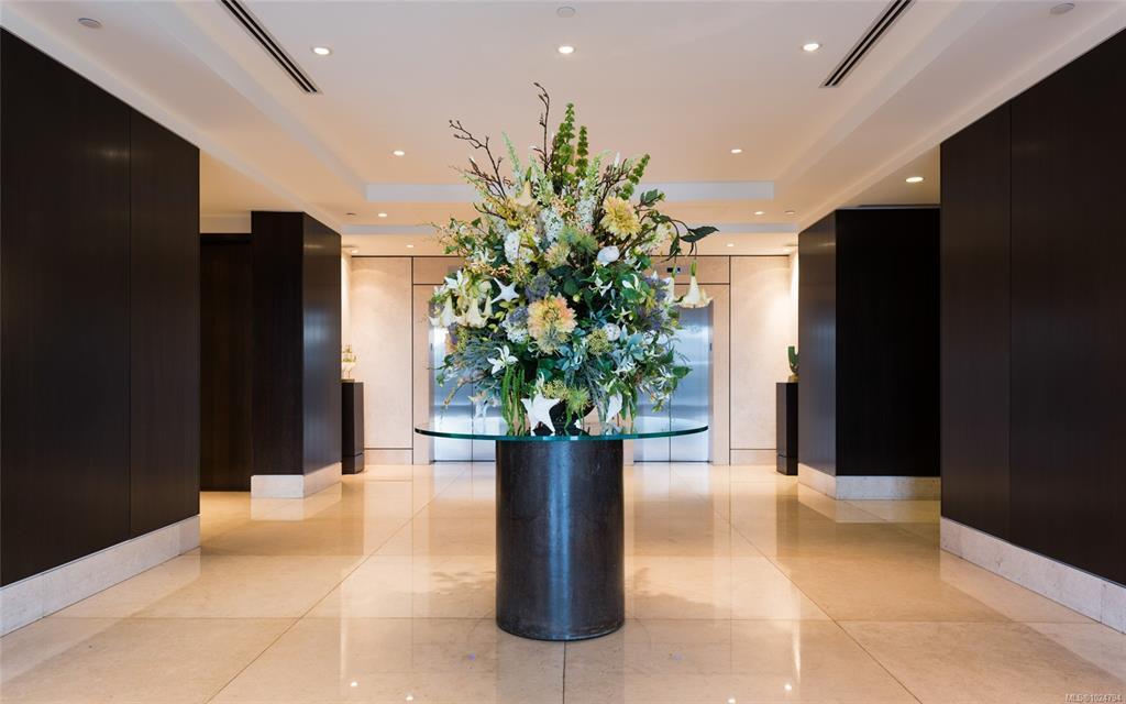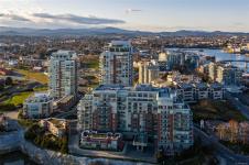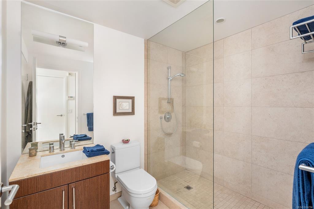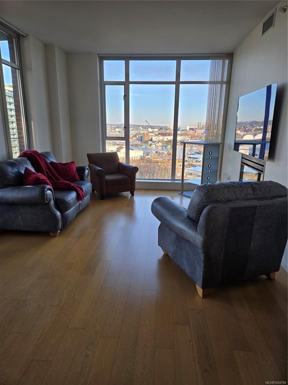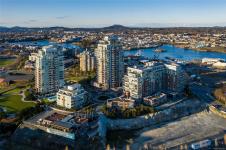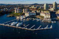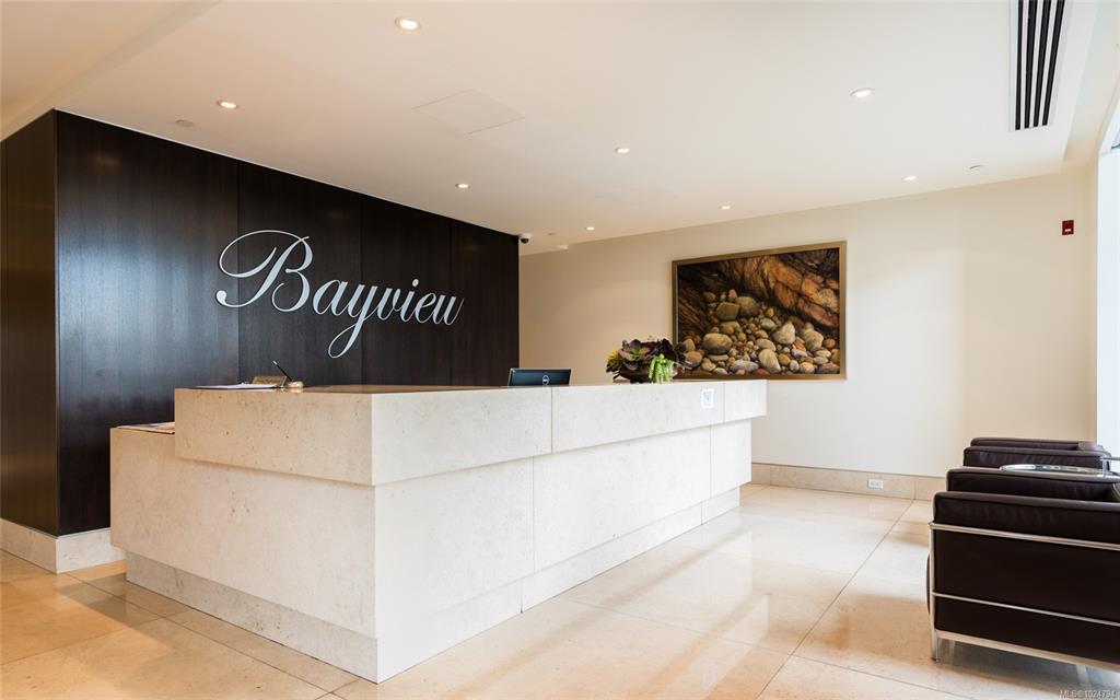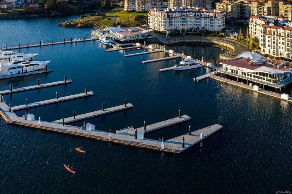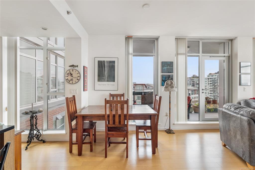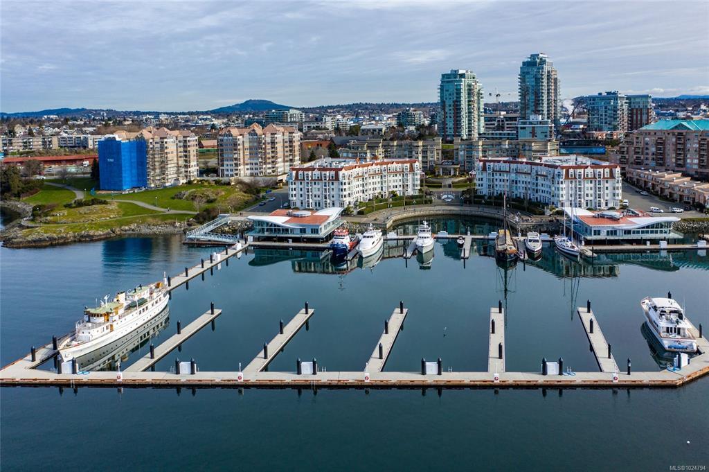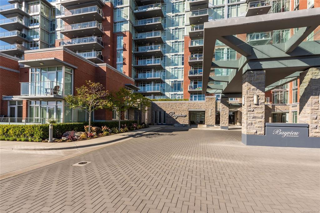 Luxury living at Bayview One. This bright 1,100+ sq ft condo features hardwood floors and floor-to-ceiling windows with eastern views over the Inner Harbour, from the Blue Bridge north up the inlet. The open floorplan offers great flow through the kitchen, dining and living areas. The kitchen includes a gas cooktop, granite countertops, high-end cabinetry and an island with seating, ideal for entertaining. Off the living room, the spacious balcony is a perfect spot for coffee at sunrise or watching all the marine activity. The large primary bedroom includes a 5-piece ensuite and generous closet space. A rare bonus: 2 secure parking stalls for extra value. The building welcomes you with a contemporary lobby and concierge. Amenities include a fitness centre, steam room, business centre, Hot tub, lounge/games room, an impressive outdoor BBQ area and more. Steps to the Songhees Walkway, Downtown, cafés, restaurants and transit. Pet and rental friendly, professionally managed building.