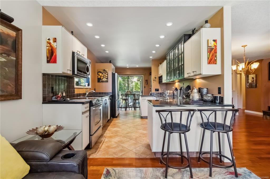 Discover your perfect townhome retreat nestled beside Rithet’s Bog in a peaceful, natural setting. Soak up the sun on your private deck with forest views, or cozy up indoors with warm oak floors, two fireplaces, and inviting living and family rooms that open to the outdoors. The bright, open-concept kitchen features a casual dining area and flows to a secluded patio beside a gentle creek—ideal for morning coffee or quiet evenings. Upstairs, the serene primary bedroom includes a full ensuite, while a second spacious bedroom and full bath provide comfort and flexibility. A main-level flex space adds functionality for work or hobbies. Large windows throughout bring in abundant natural light, creating a warm and welcoming atmosphere. Surrounded by lush gardens and scenic walking trails, this home offers a rare connection to nature while remaining just minutes from shops, services, and amenities. A rare and peaceful lifestyle opportunity you won’t want to miss!