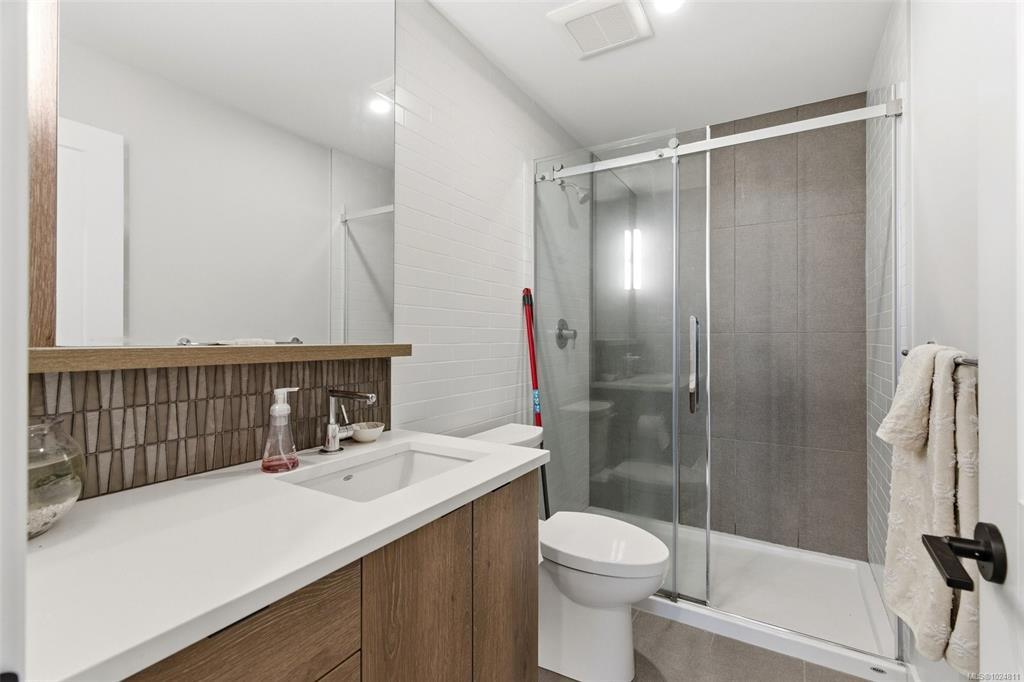 Discover this beautifully designed 2-bed, 2-bath condo in the sought-after Florence Lake area, built in 2018 and showcasing an ideal layout with bedrooms thoughtfully placed on opposite sides for maximum privacy. The primary suite features a luxurious ensuite, while the second bedroom enjoys its own cheater ensuite — perfect for guests, roommates or flexible living arrangements. Step inside to an open-concept living space with abundant natural light, contemporary finishes, and quality craftsmanship throughout. Entertain with ease in the well-appointed kitchen and enjoy seamless flow to the living and dining areas — ideal for everyday living and hosting alike. Triple Crown Residence offers a well-managed building with great amenities, including secure underground parking, bike storage, and gym. Located just minutes from shopping, dining, recreation & commuter routes, this home delivers the perfect blend of convenience, comfort and style in one of Langford’s most desirable communities.
